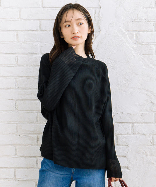 51-5650【FONT LAB】アシンメトリーボタンハイネックリブニット