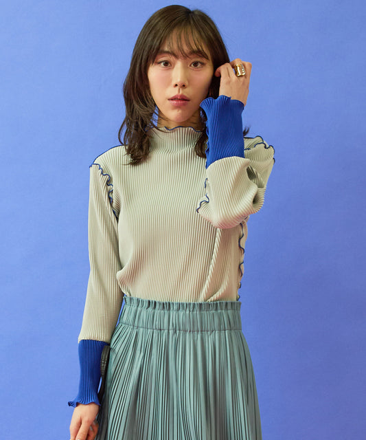 【FONT LAB】プリーツちびハイネックバイカラーカットソー
