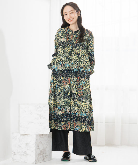10%OFF2点でプレゼント抽選ノベルティ対象デシンフラワープリントピンタックワンピース