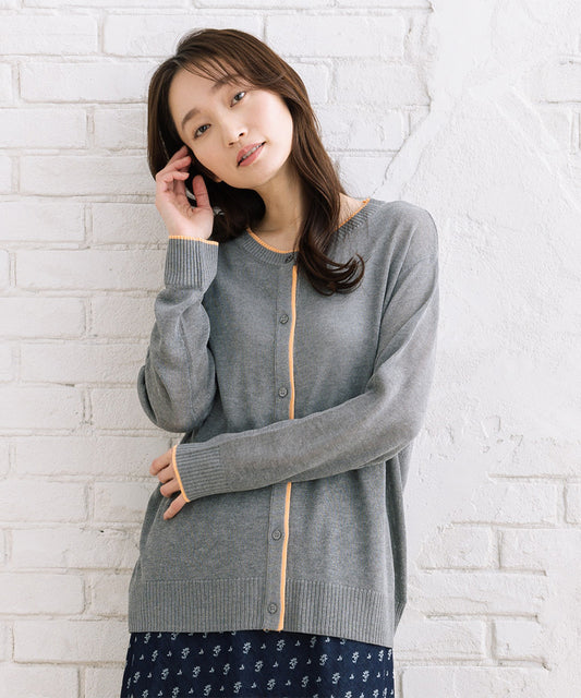 10%OFF2点でプレゼント抽選ノベルティ対象FONTLAB 配色シアークルーネックカーディガン