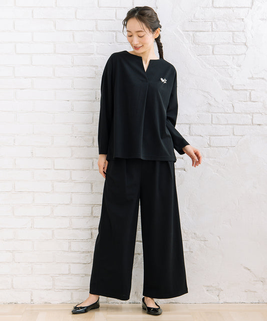 FONTLAB 【COOL・UV・速乾】キーネックカットソー×ワイドタックパンツセットアップ