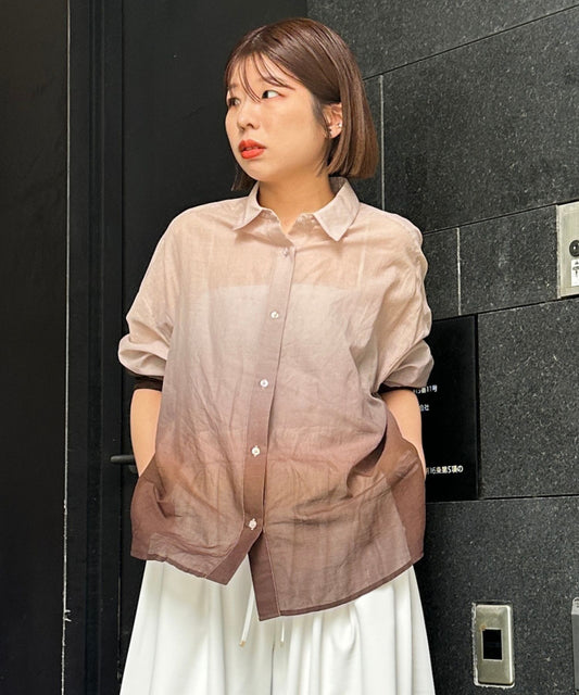 10%OFF2点でプレゼント抽選【FONT LAB】オーガンジー×3Dフラワーシャツ