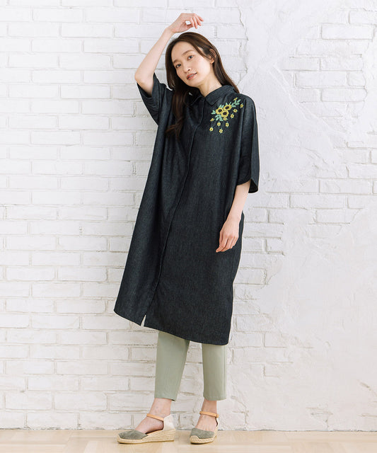 INDESIGN ワンポイントフラワーエンブロイダリーデニムワンピース