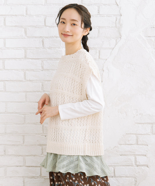 FONTLAB テープヤーンニットベスト×チェックフリルヘムインナーアンサンブル