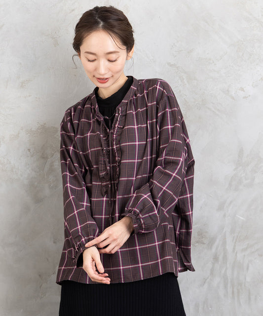 【sabstreet bis】【web限定】 アソートチェックフリルラインブラウス