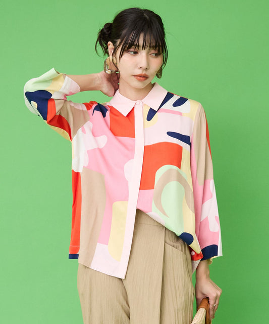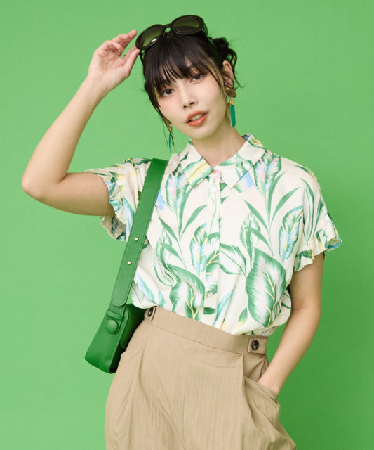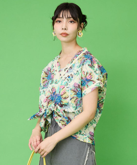 【INDUS luxury for JETSET SOLO PLUS】フラワープリントノットブラウス