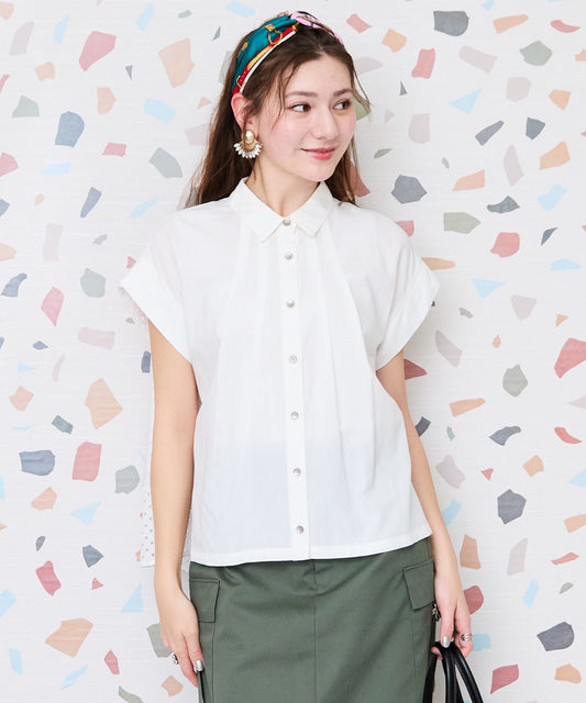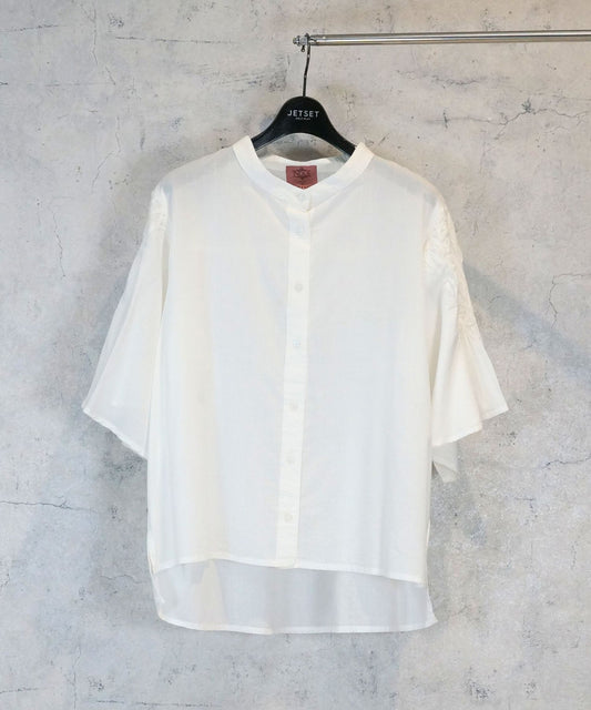 【INDUS luxury for JETSET SOLO PLUS】スモッキングスリーブバンドカラーシャツ