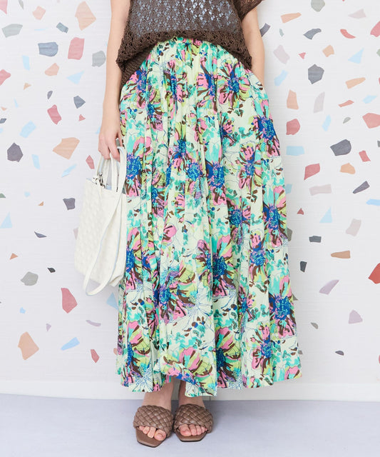 【INDUS luxury for JETSET SOLO PLUS】フラワープリントフレアスカート
