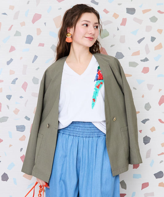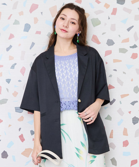 【JETSET SOLO PLUS】リネンライクストレッチ半袖テーラードジャケット
