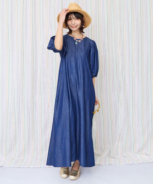 【INDUS luxury for JETSET SOLO PLUS】シャンブレーデニムパフスリーブワンピース