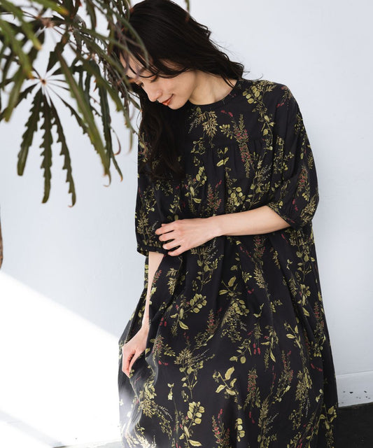 21号(6L~) INDESIGN フラワープリントピンタックワンピース