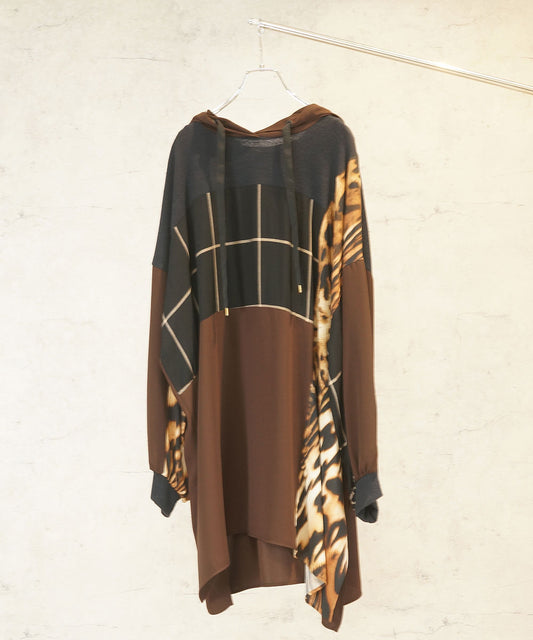 21号(6L~) MAT FASHION ヒョウ柄パッチワークパーカー