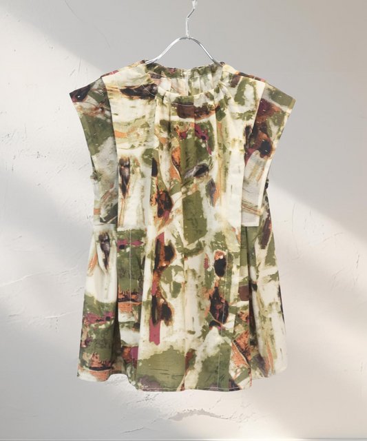 【INDUS luxury for JETSET SOLO PLUS】スモッキングスリーブバンドカラーシャツ