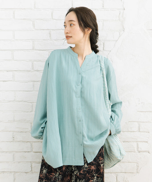 21号(6L~) カモメ×水彩ドットプリント2wayブラウス