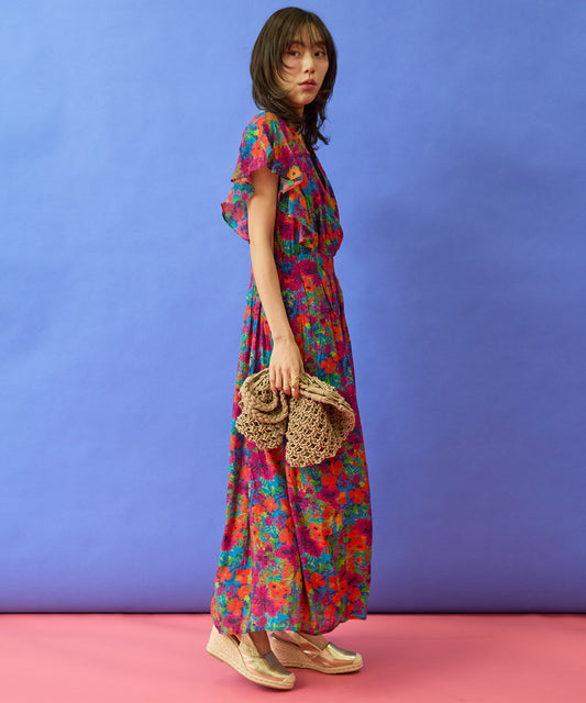 【INDUS luxury for JETSET SOLO PLUS】長袖ティアードボイルワンピース