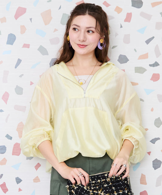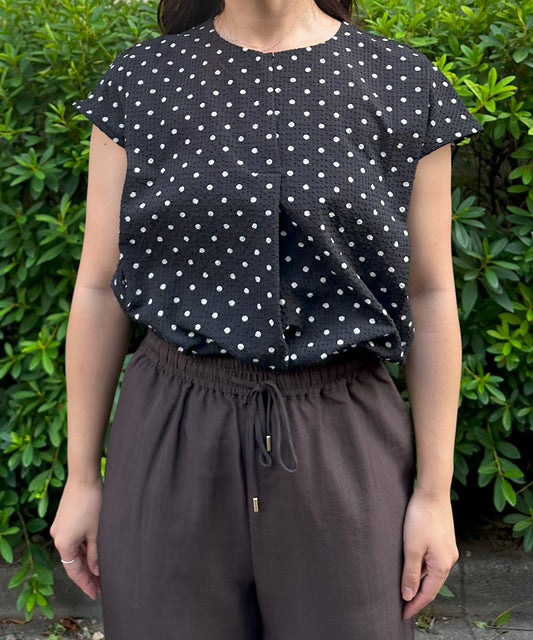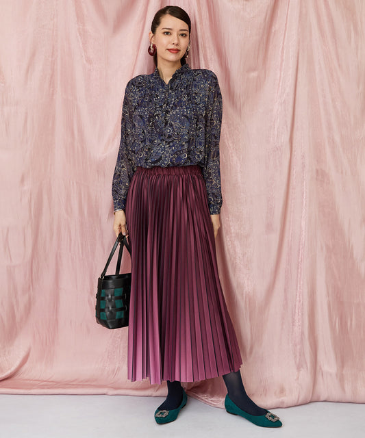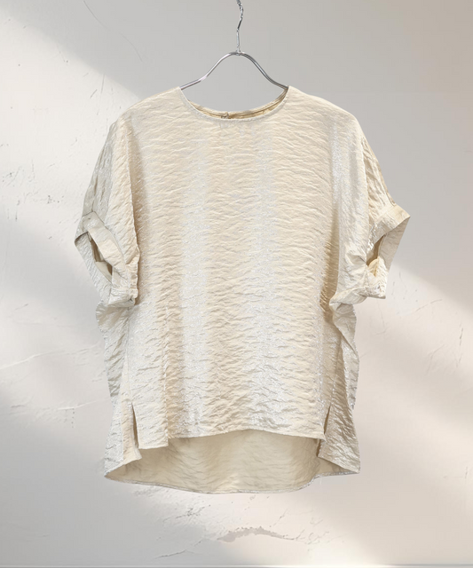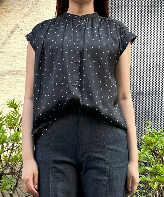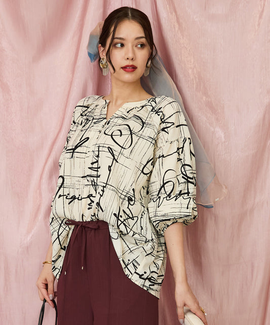 【INDUS luxury for JETSET SOLO PLUS】ホイルプリントボリュームスリーブブラウス