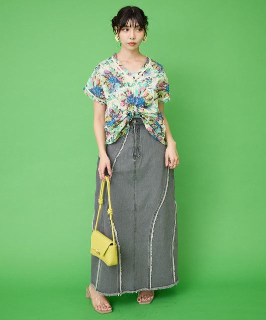 【INDUS luxury for JETSET SOLO PLUS】フラワーシャーリングブラウス