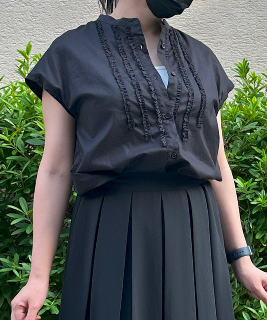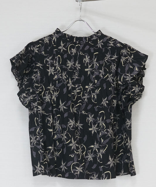 【INDUS luxury for JETSET SOLO PLUS】リーフプリントフリルスリーブブラウス