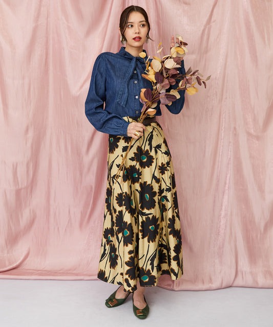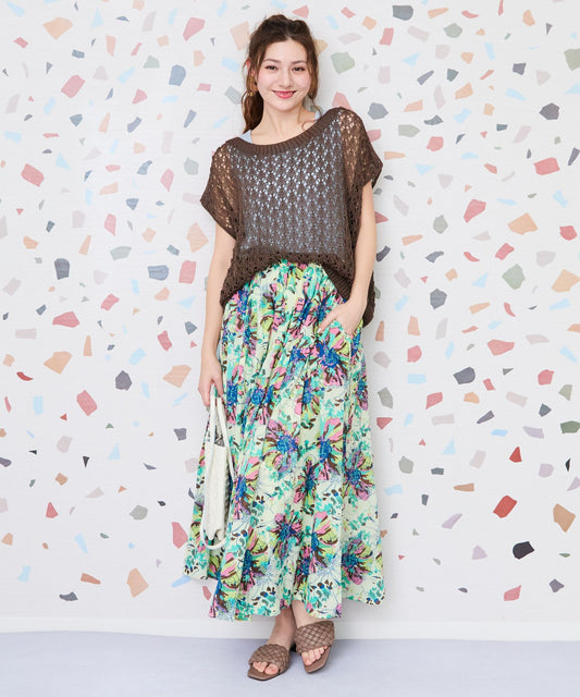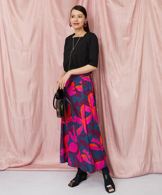 【INDUS luxury for JETSET SOLO PLUS】フラワープリントフレアスカート