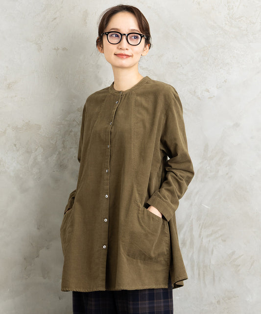 21号(6L~) INDESIGN コーデュロイバンドカラーシャツ
