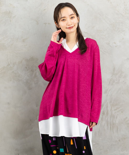 fransa plus size selection シャツフェイクレイヤードVネックニット