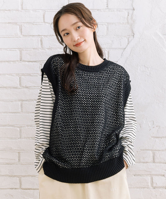 FONTLAB テープヤーンニットベスト×チェックフリルヘムインナーアンサンブル