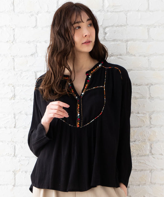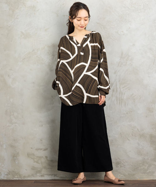 fransa plus size selection ジオメトリックラインパターンブラウス