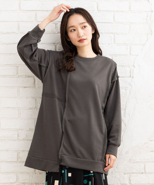 21号(6L~) FONTLAB 異素材カラーブロッキングスウェット