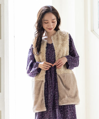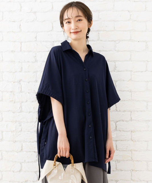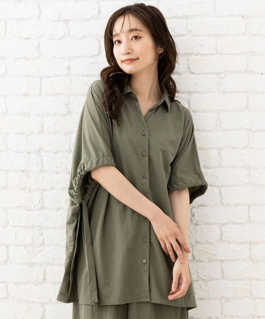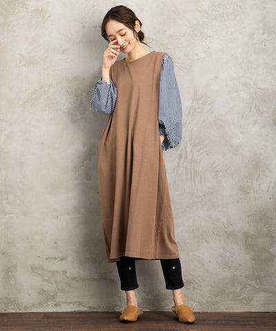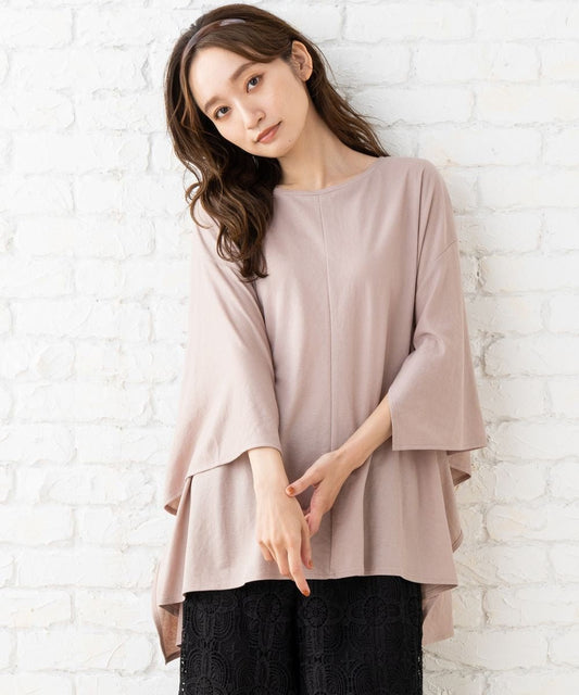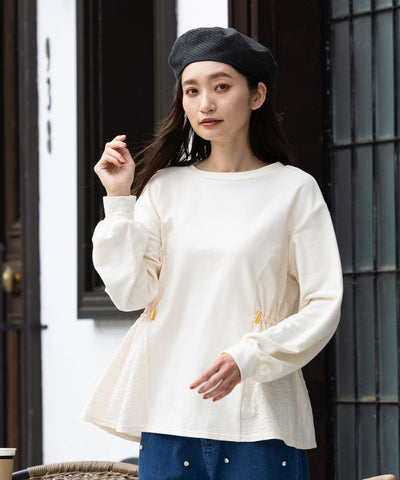 21号(6L~) FONTLAB 布帛コンビボリュームギャザースリーブカットソー