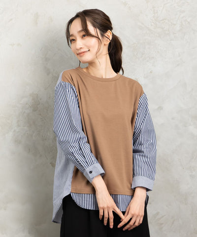 21号(6L~) FONTLAB 布帛コンビ配色ステッチカットソー