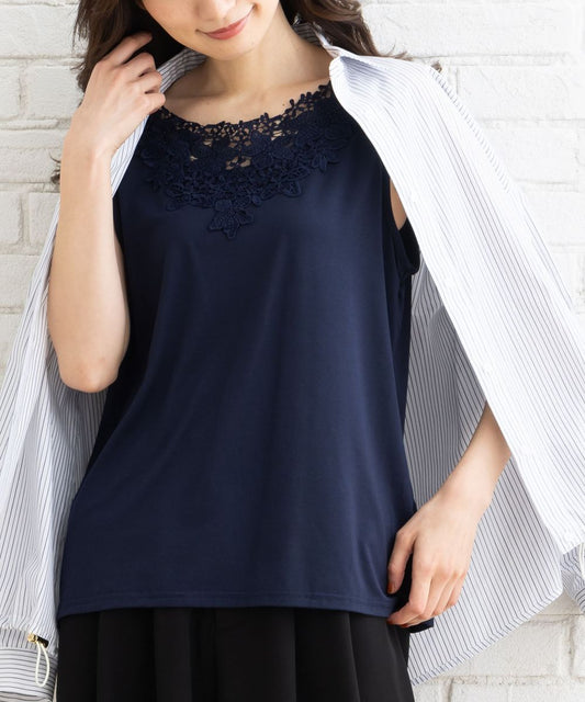 21号(6L~) FONTLAB シャツレイヤード風ポンチトップス