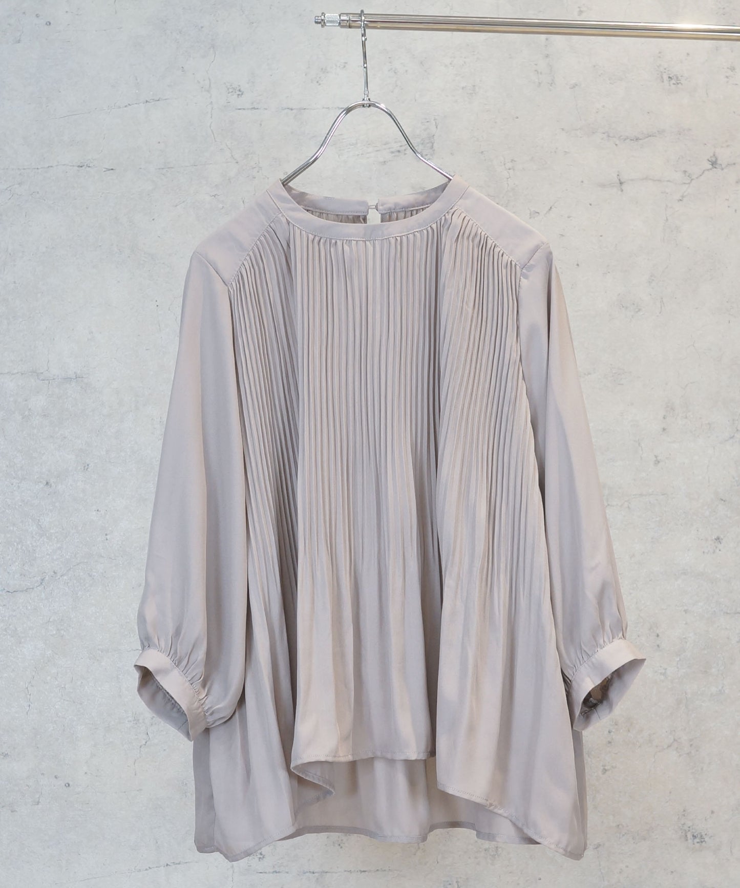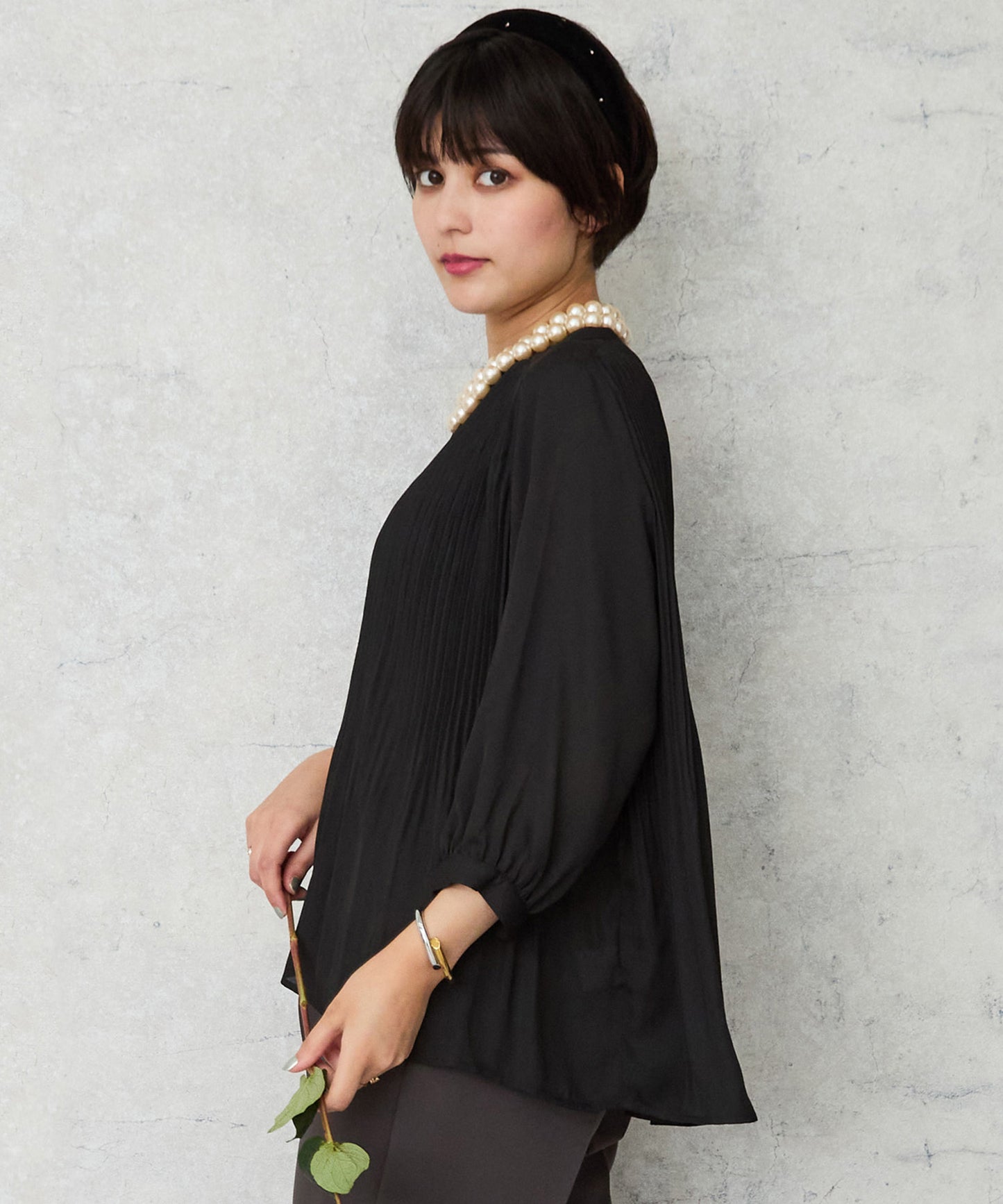 裾に向かって自然に消えていく消しプリーツ加工を施したシフォンブラウス。