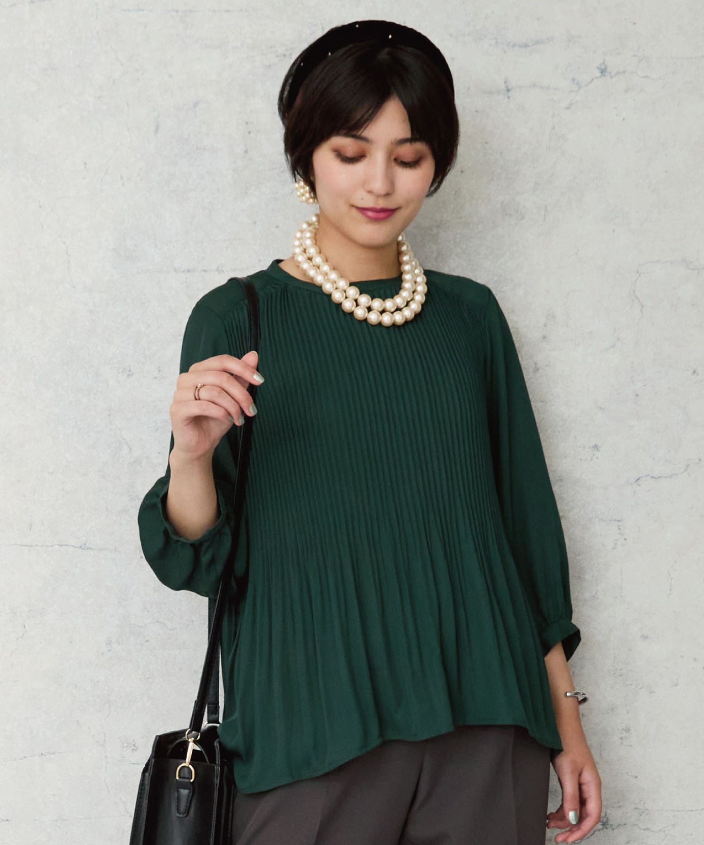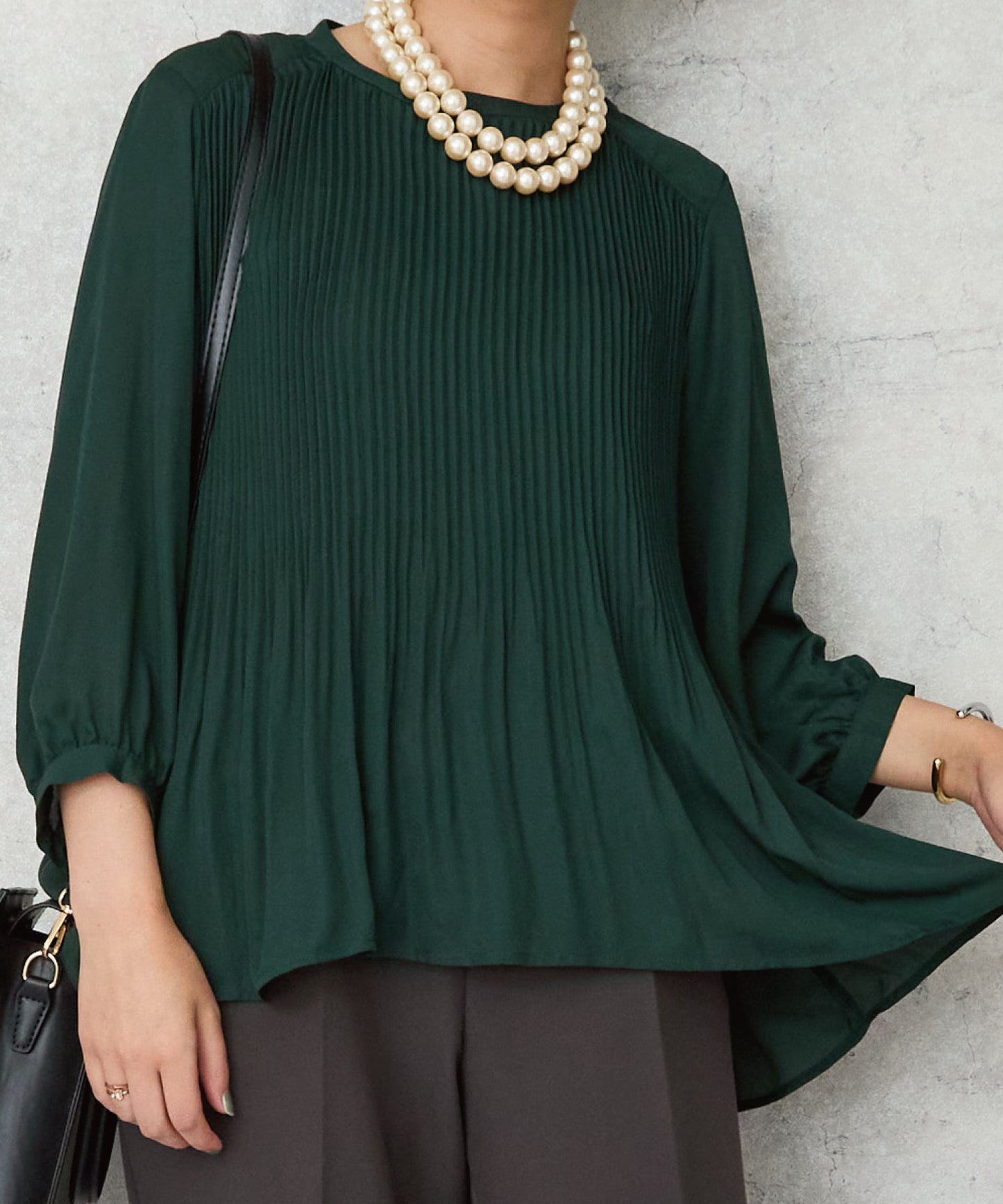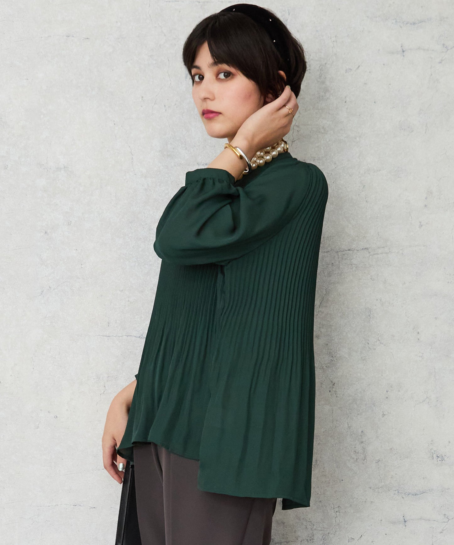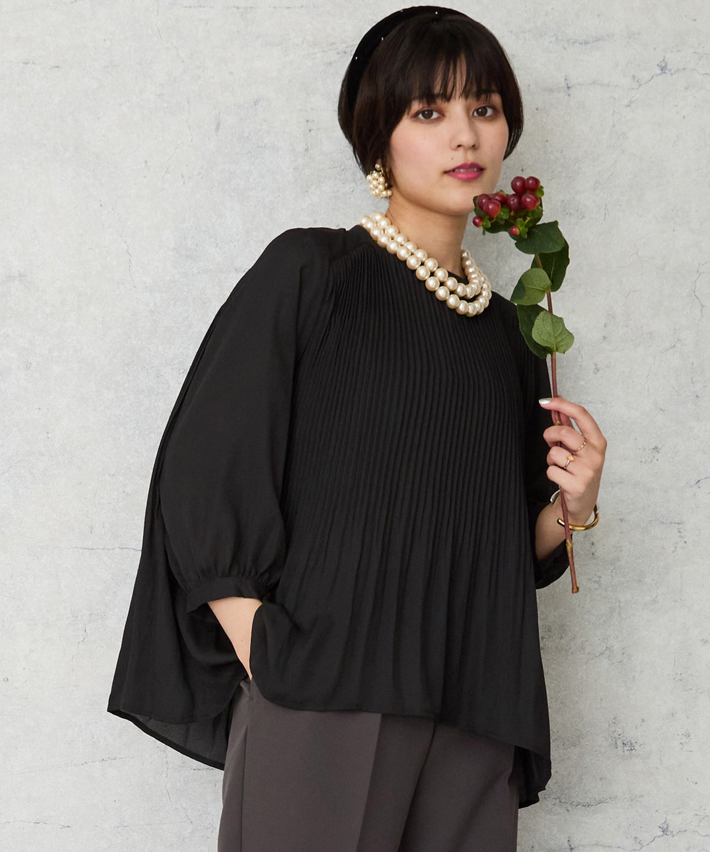 華奢なプリーツが華やかな印象で、オンでもOオフでも使える万能アイテム。