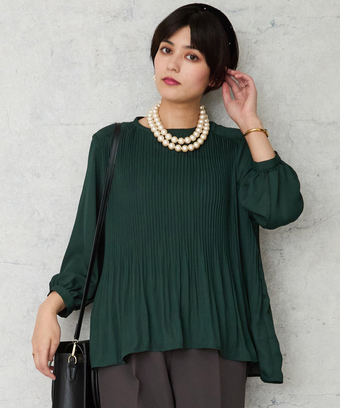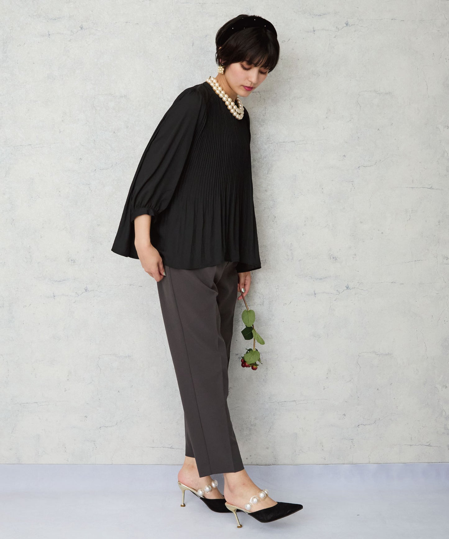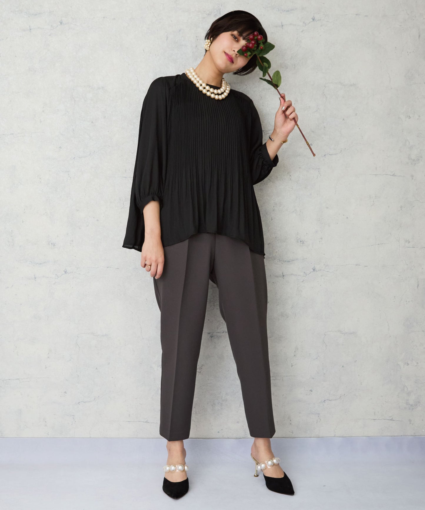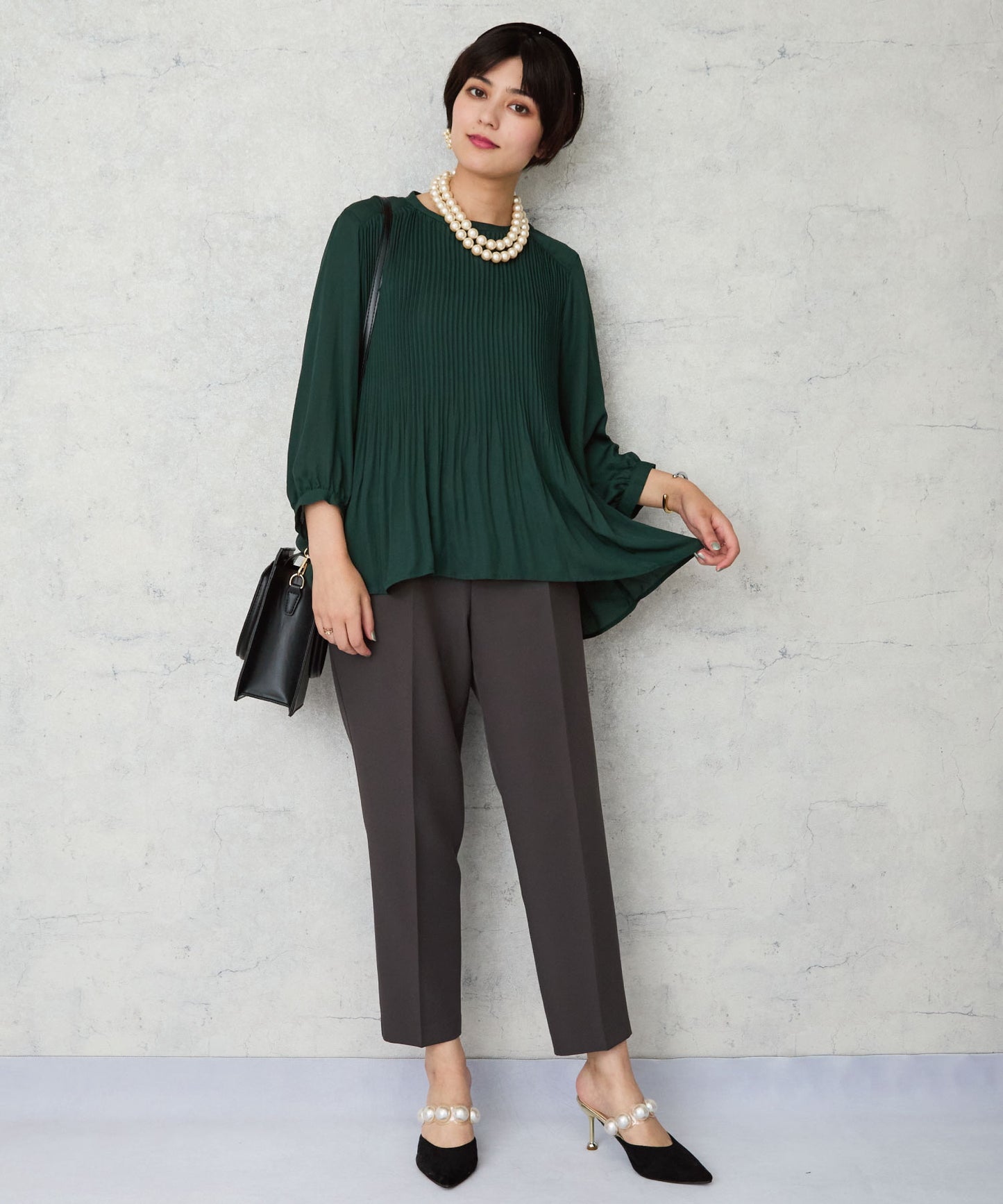 華奢なプリーツが華やかな印象で、オンでもOオフでも使える万能アイテム。