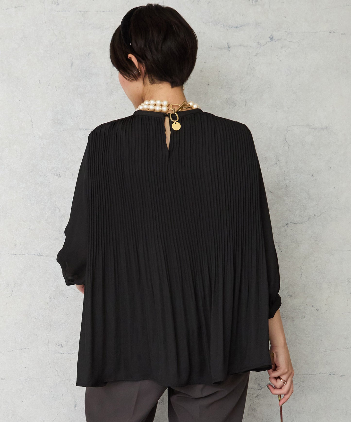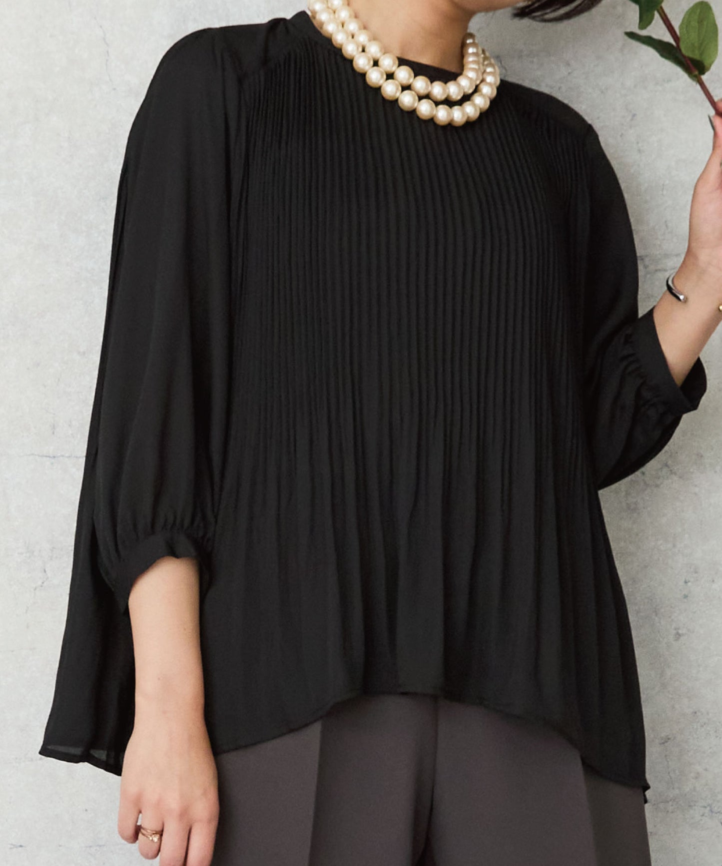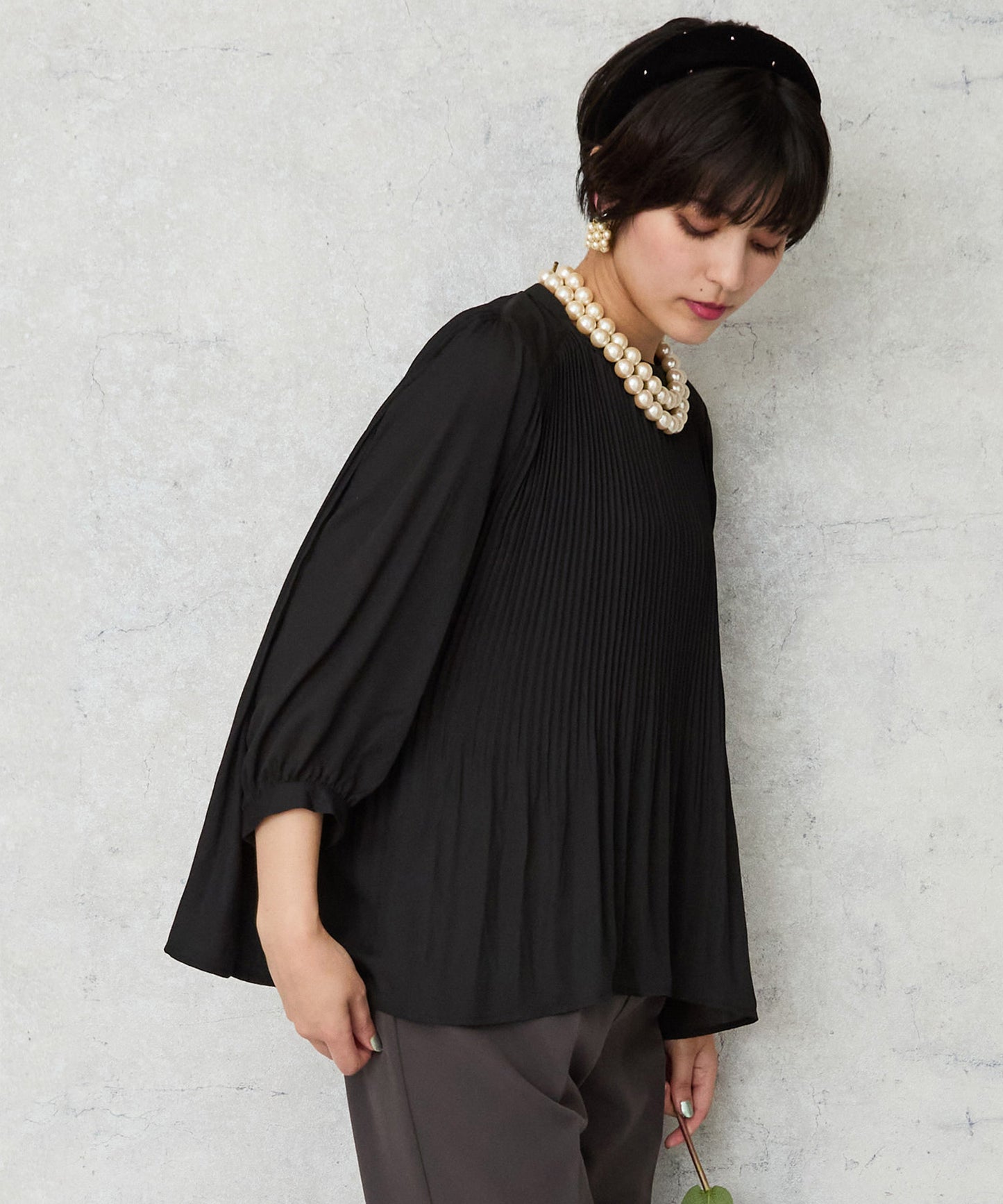 ふわっとなびく薄手のジョーゼットシフォンで、プリーツ加工が動きをプラスした女性らしい一着です。