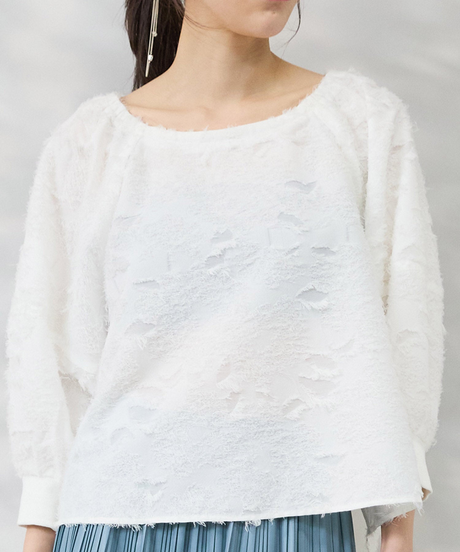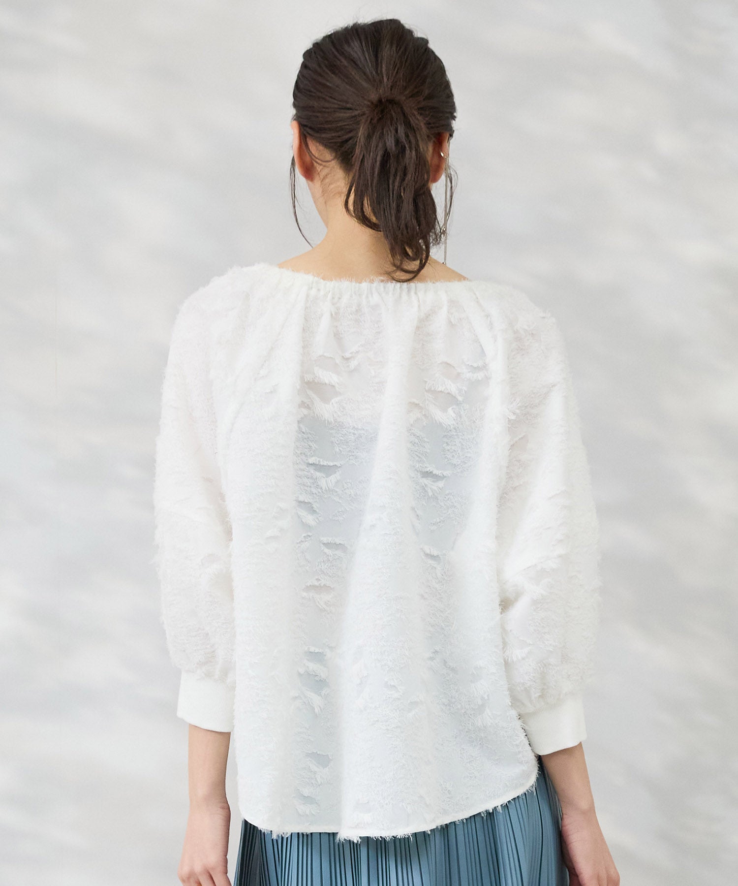 ボタニカルモチーフをカットジャガードで表現した、奥行きのあるブラウス。
