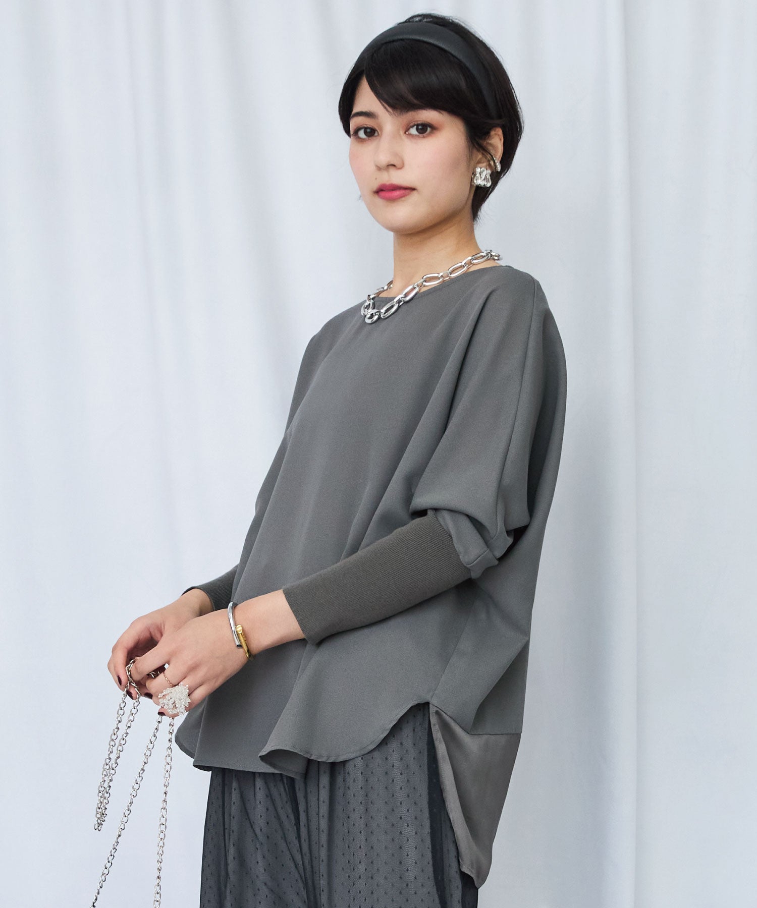 後ろの裾のサテン切り替えと、太いリブ使いがデザインポイント!
