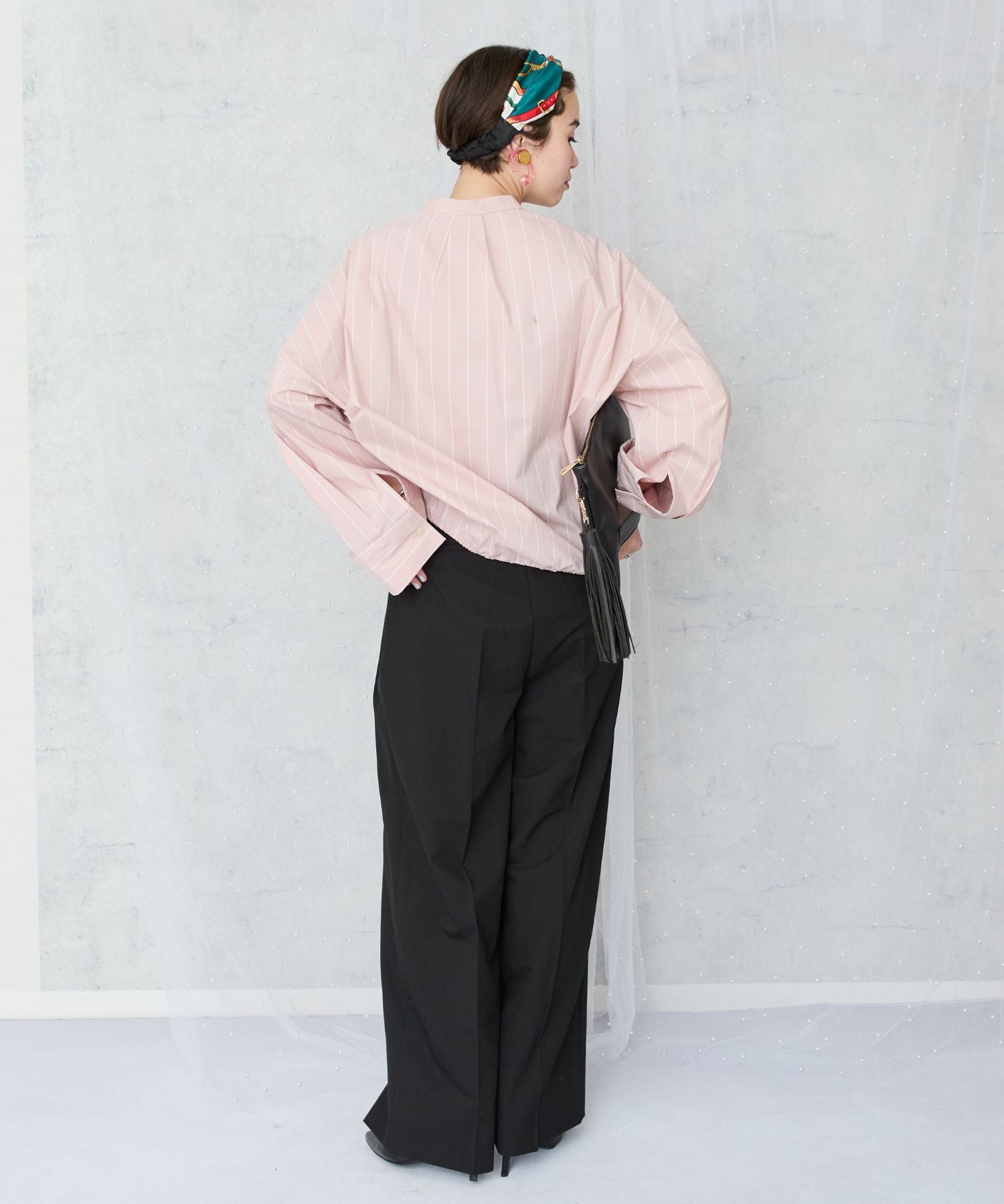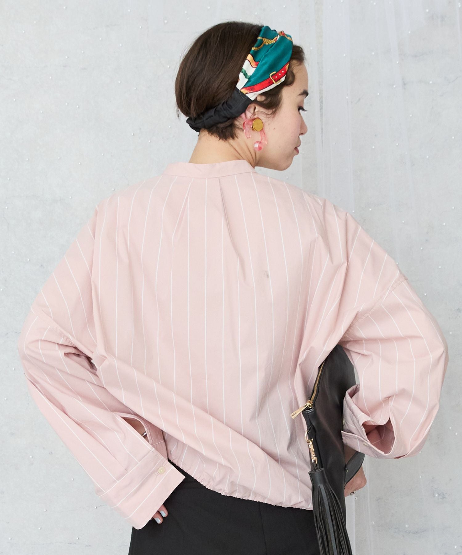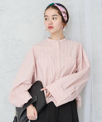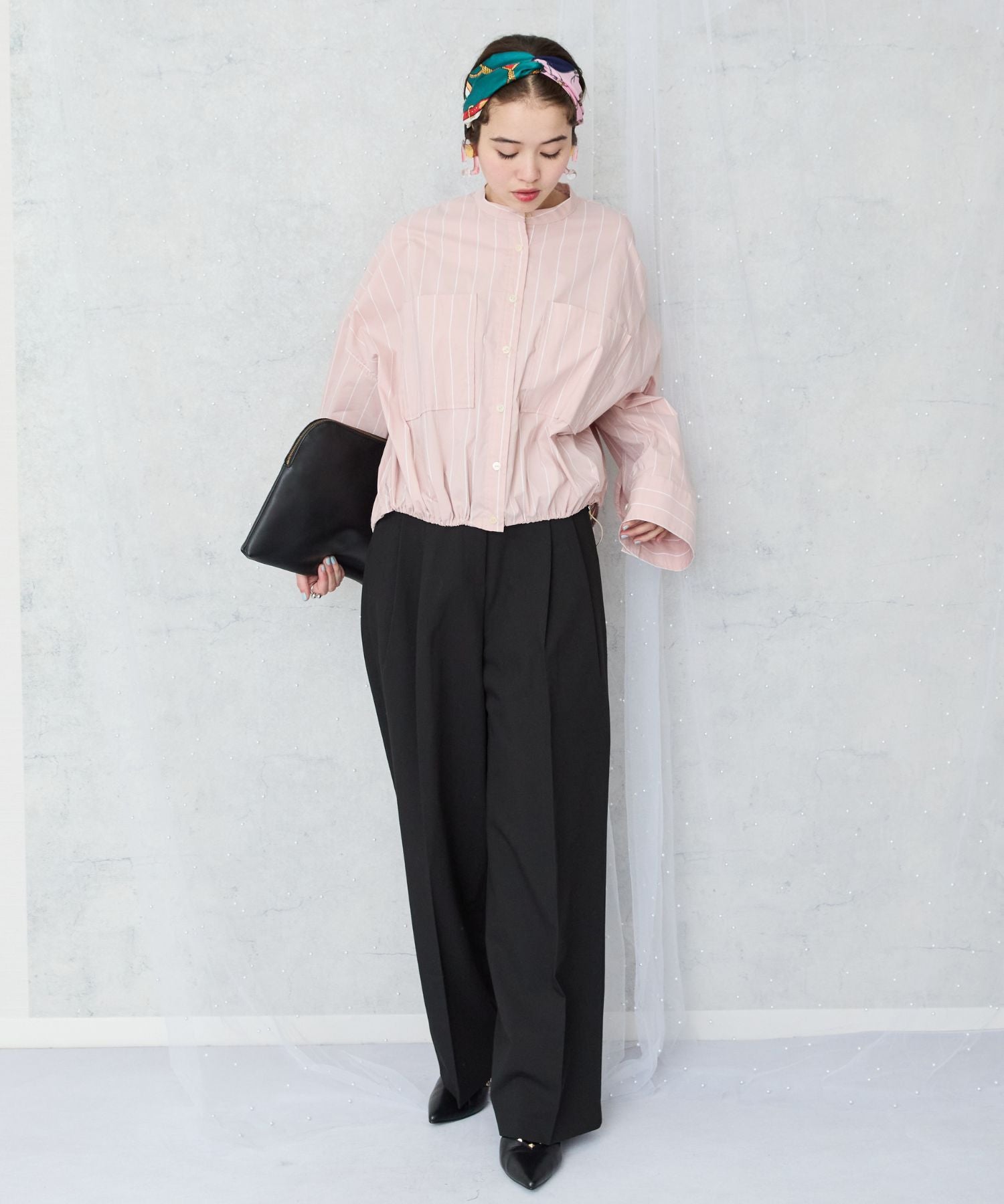 ワイドなシルエットとショート丈が魅力のバンドカラーシャツ。