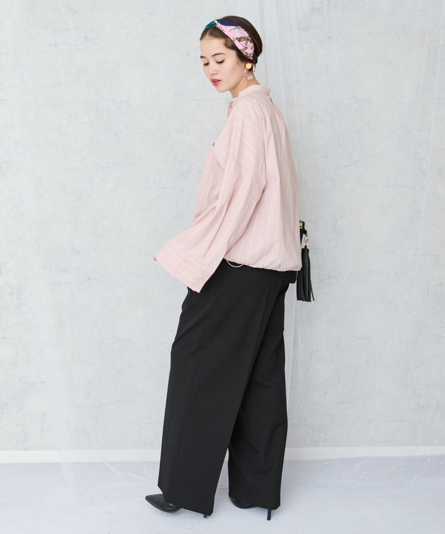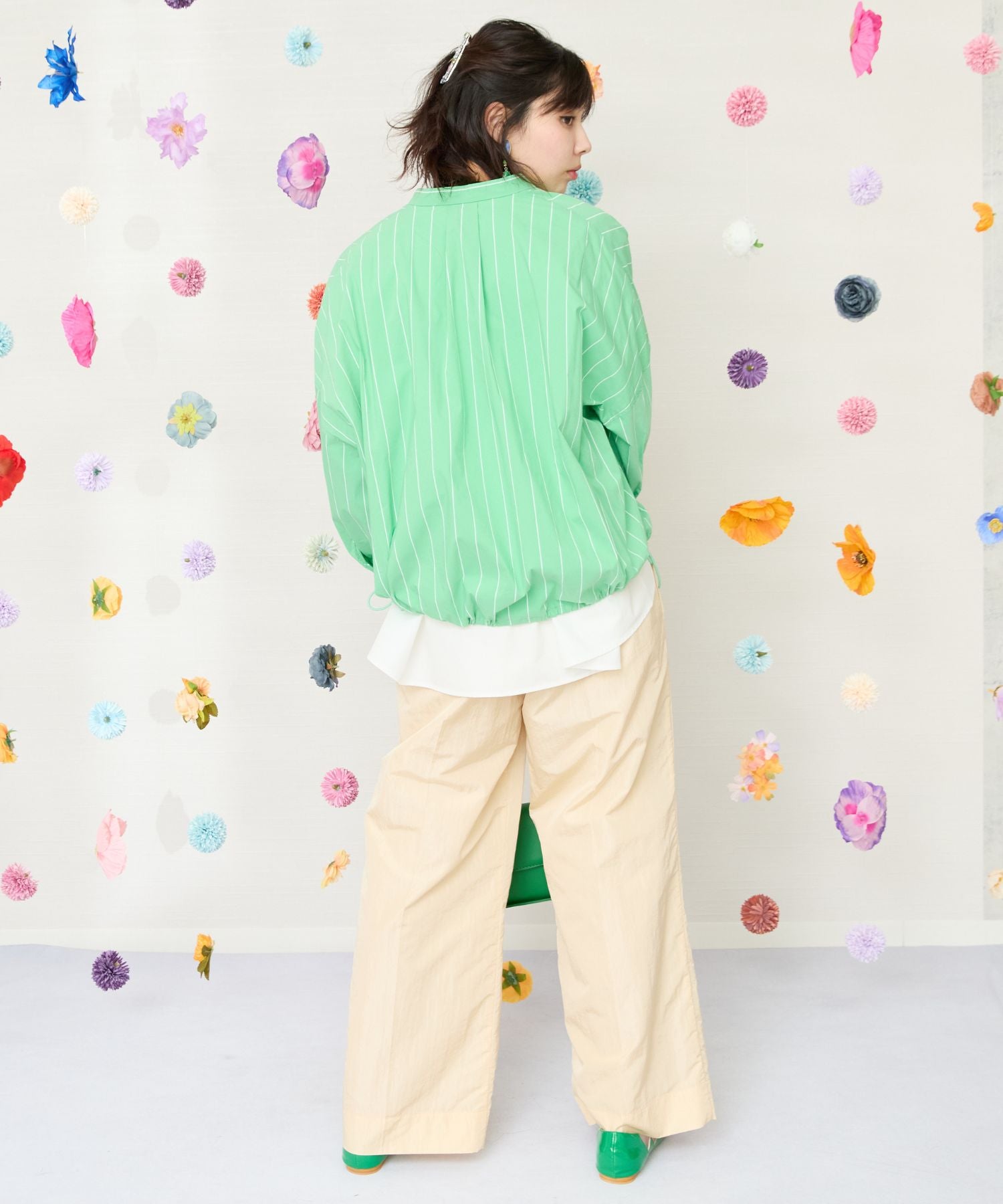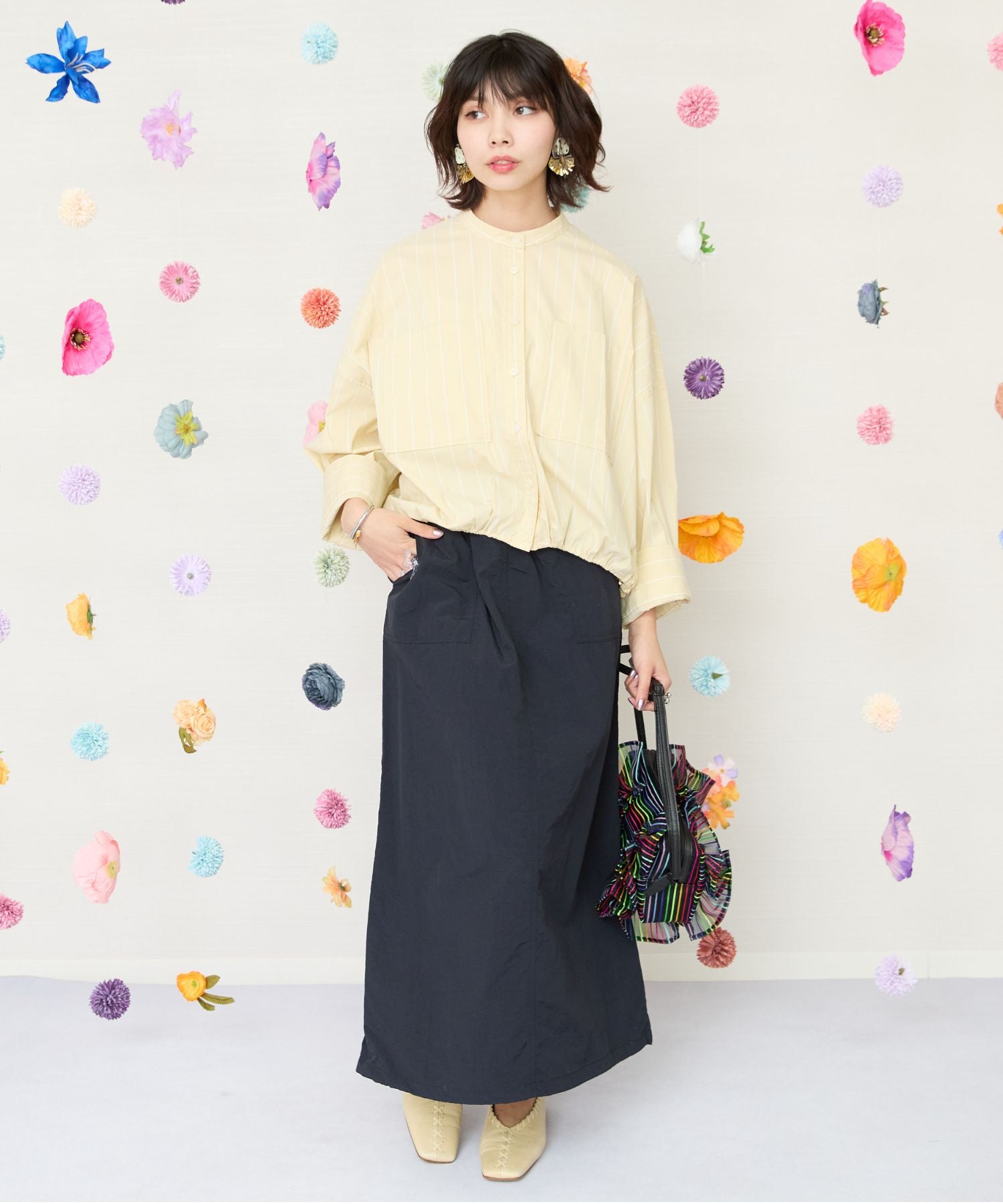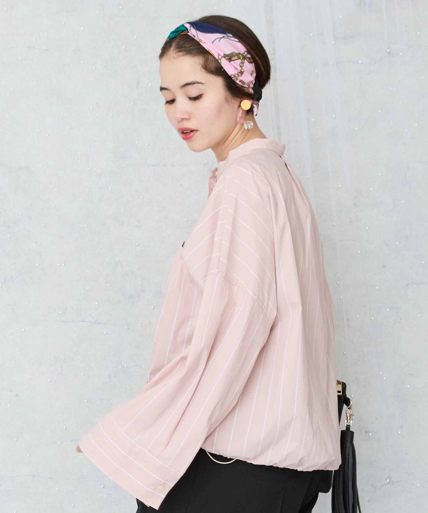 ワイドなシルエットとショート丈が魅力のバンドカラーシャツ。