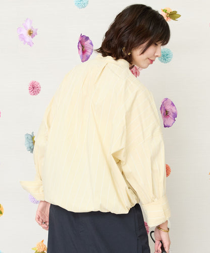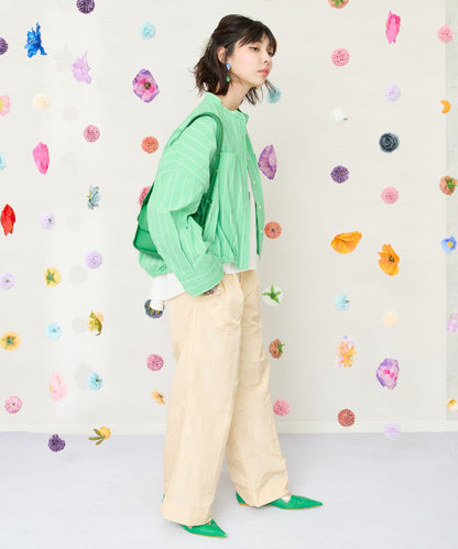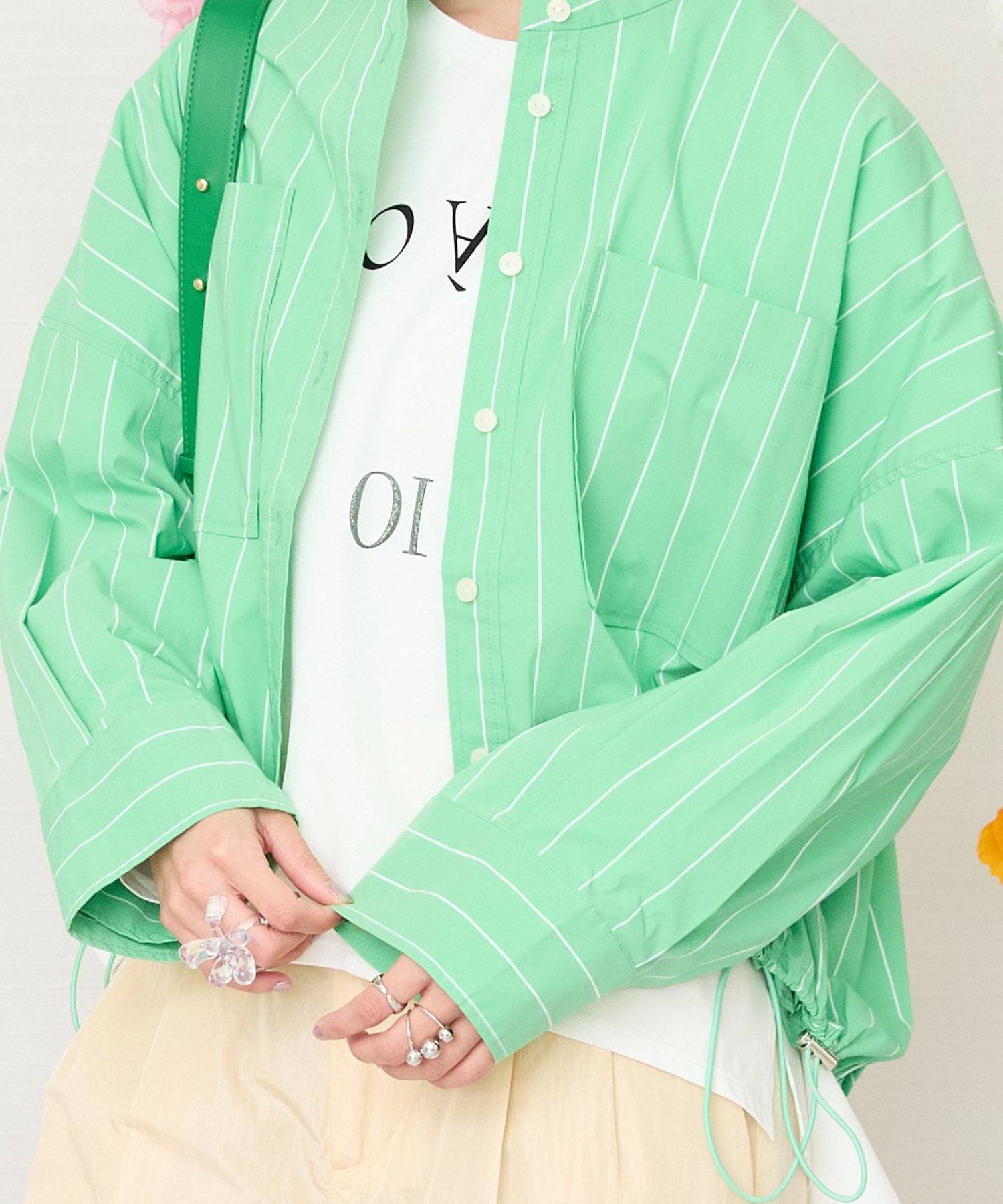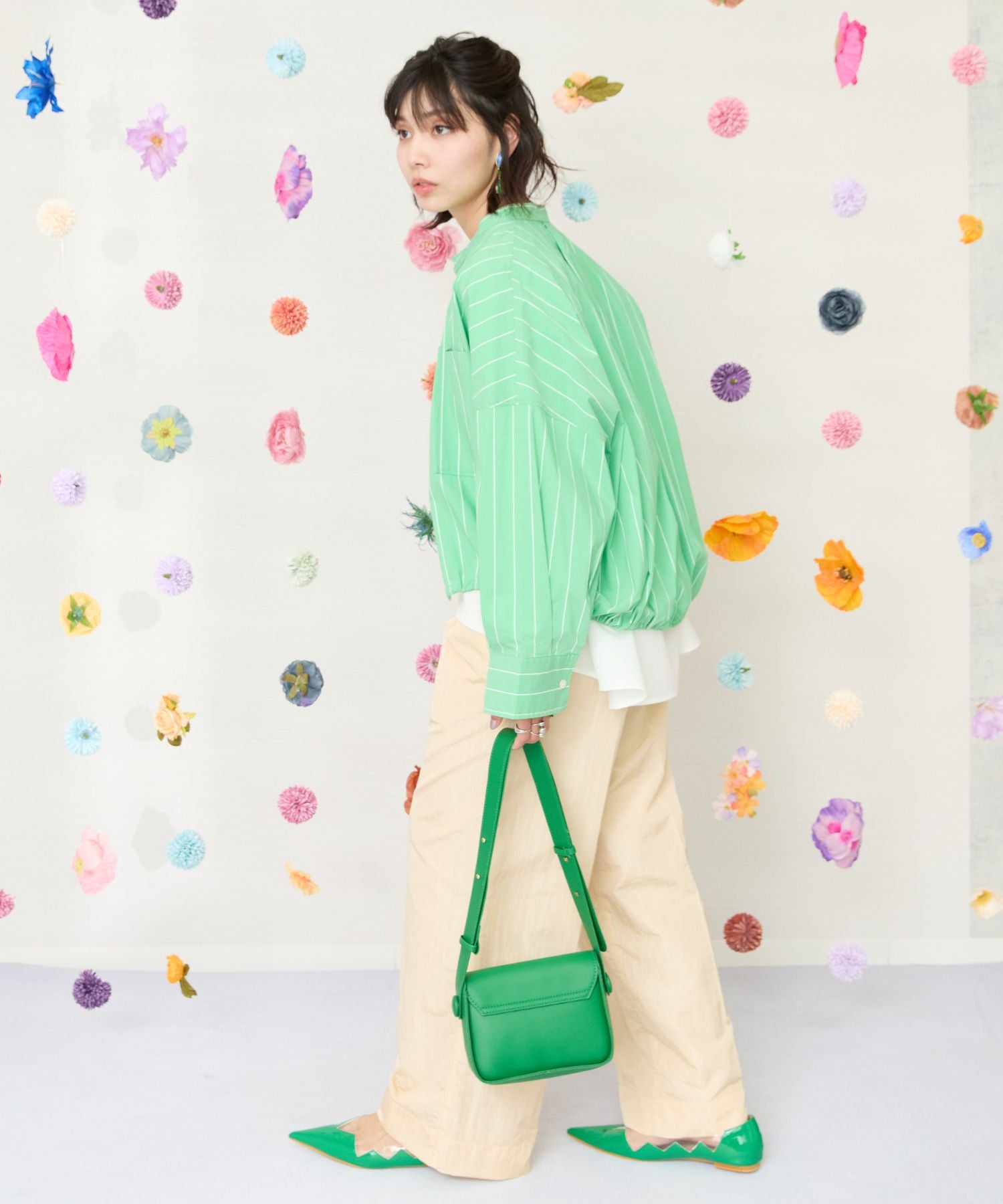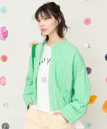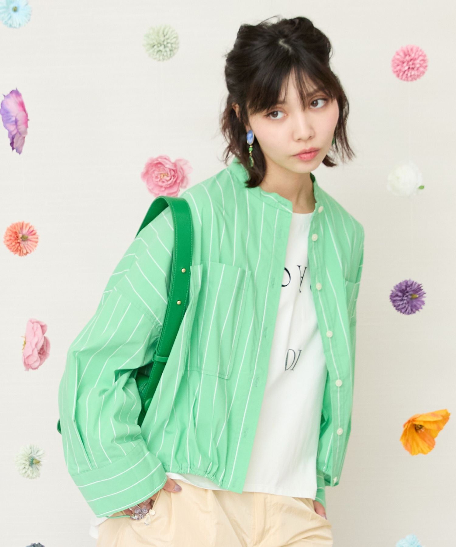 爽やかな春カラーにオフのペンシルストライプが映え、どんなスタイルにも馴染む一枚です。
