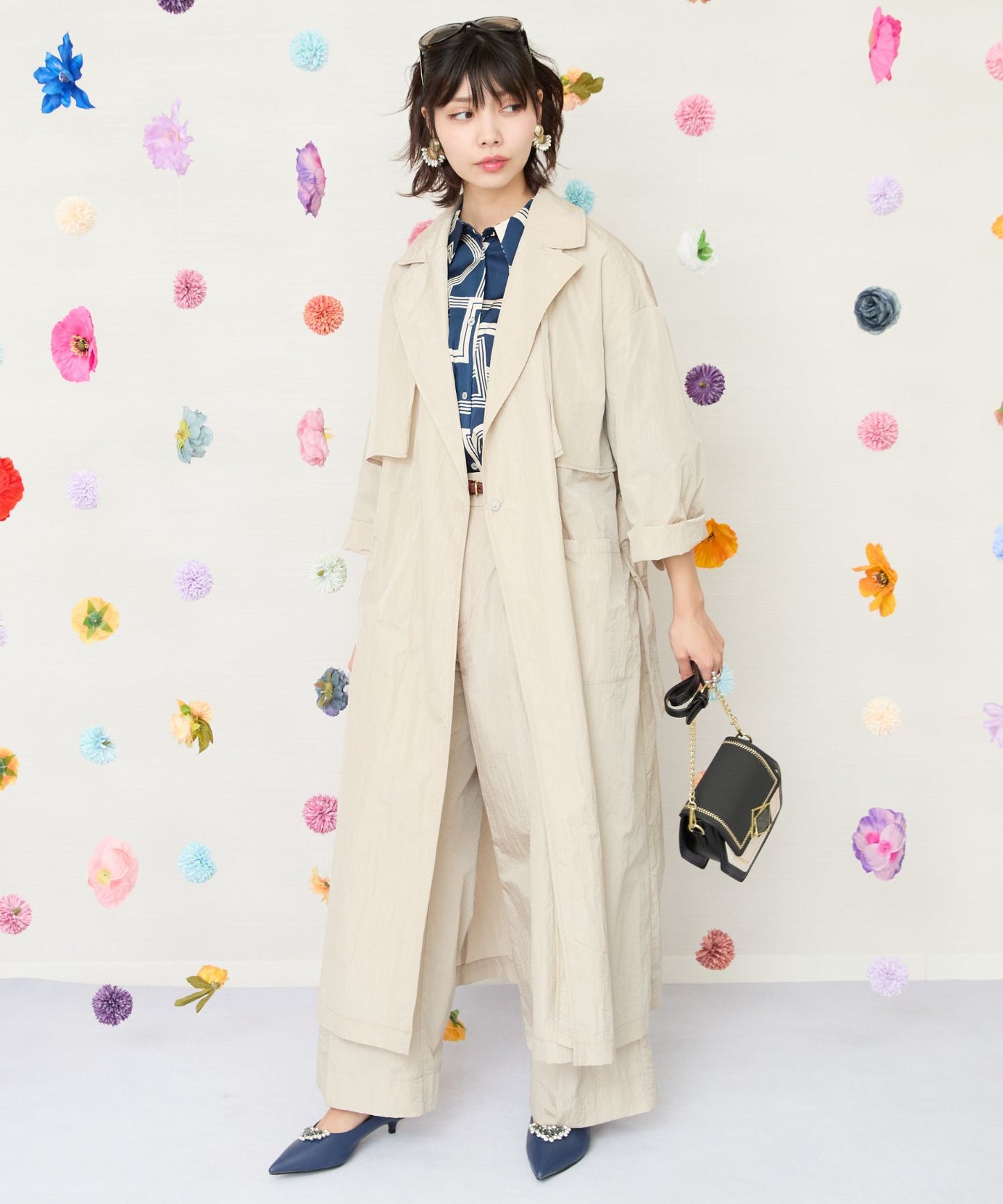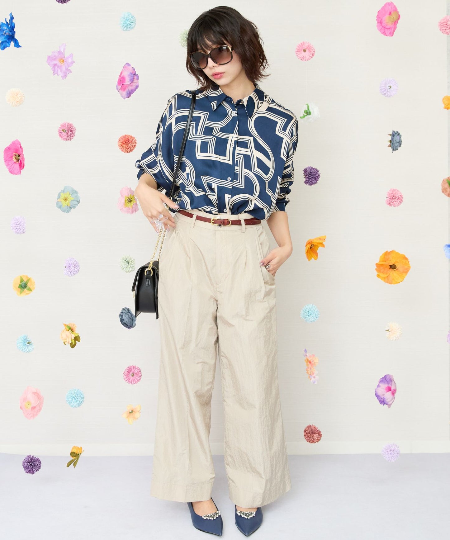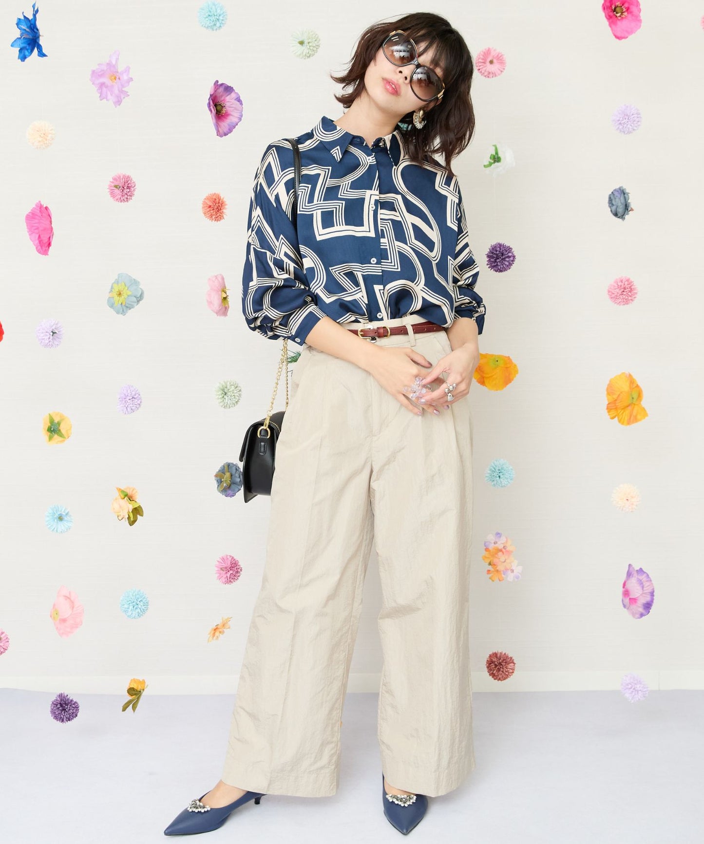 レーヨン素材を使用し、滑らかな落ち感と上品な光沢感が特徴。