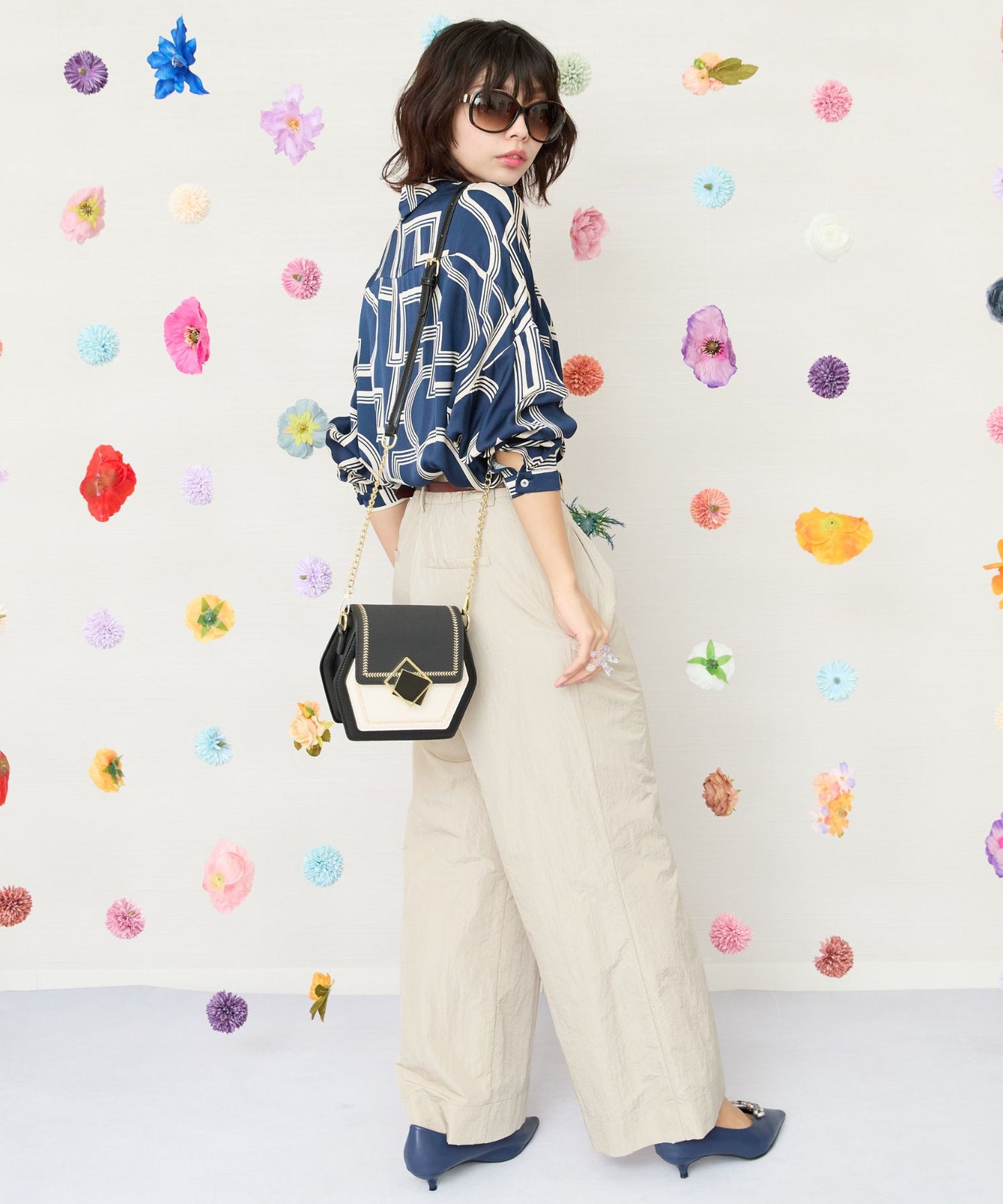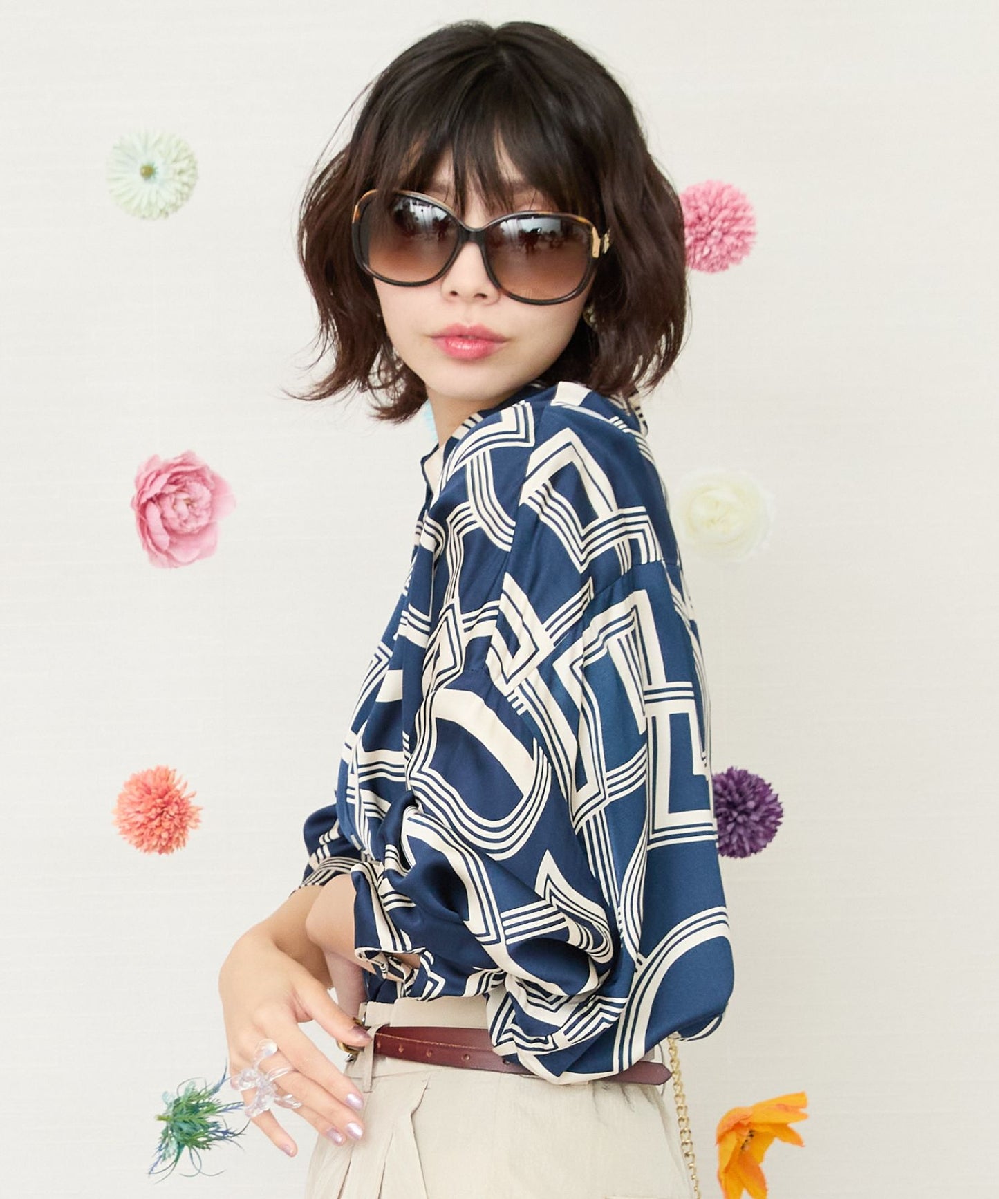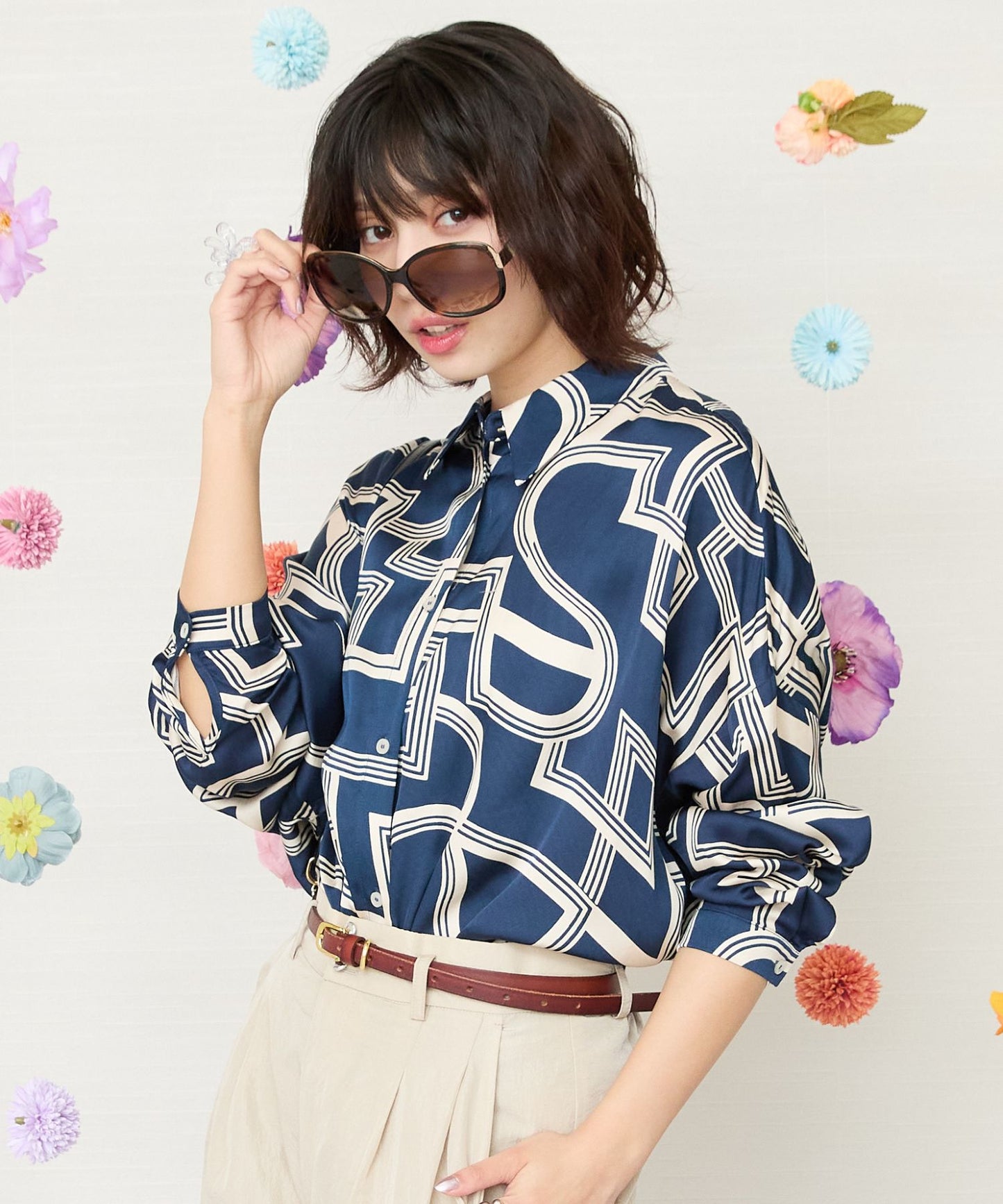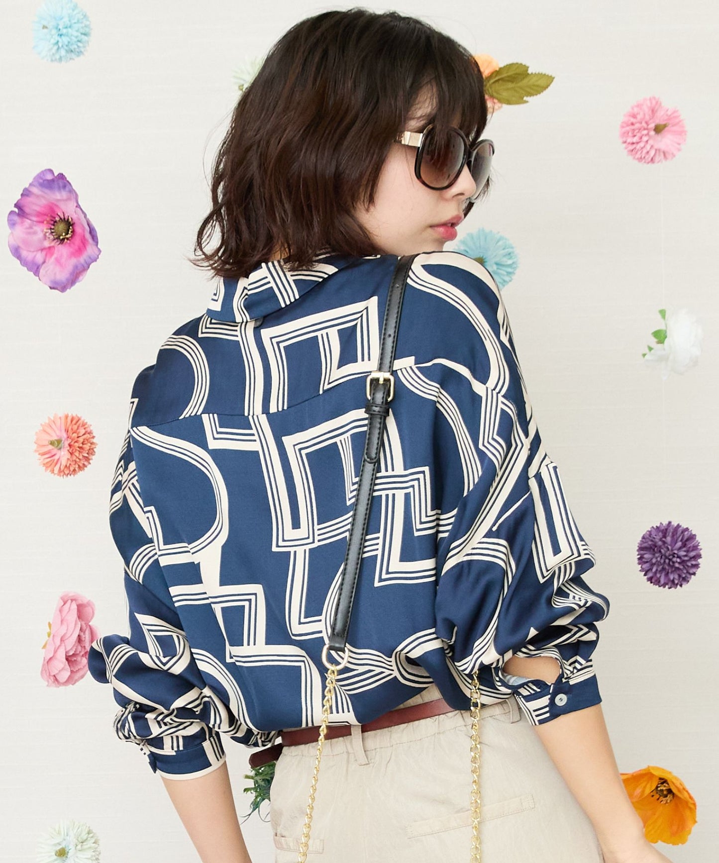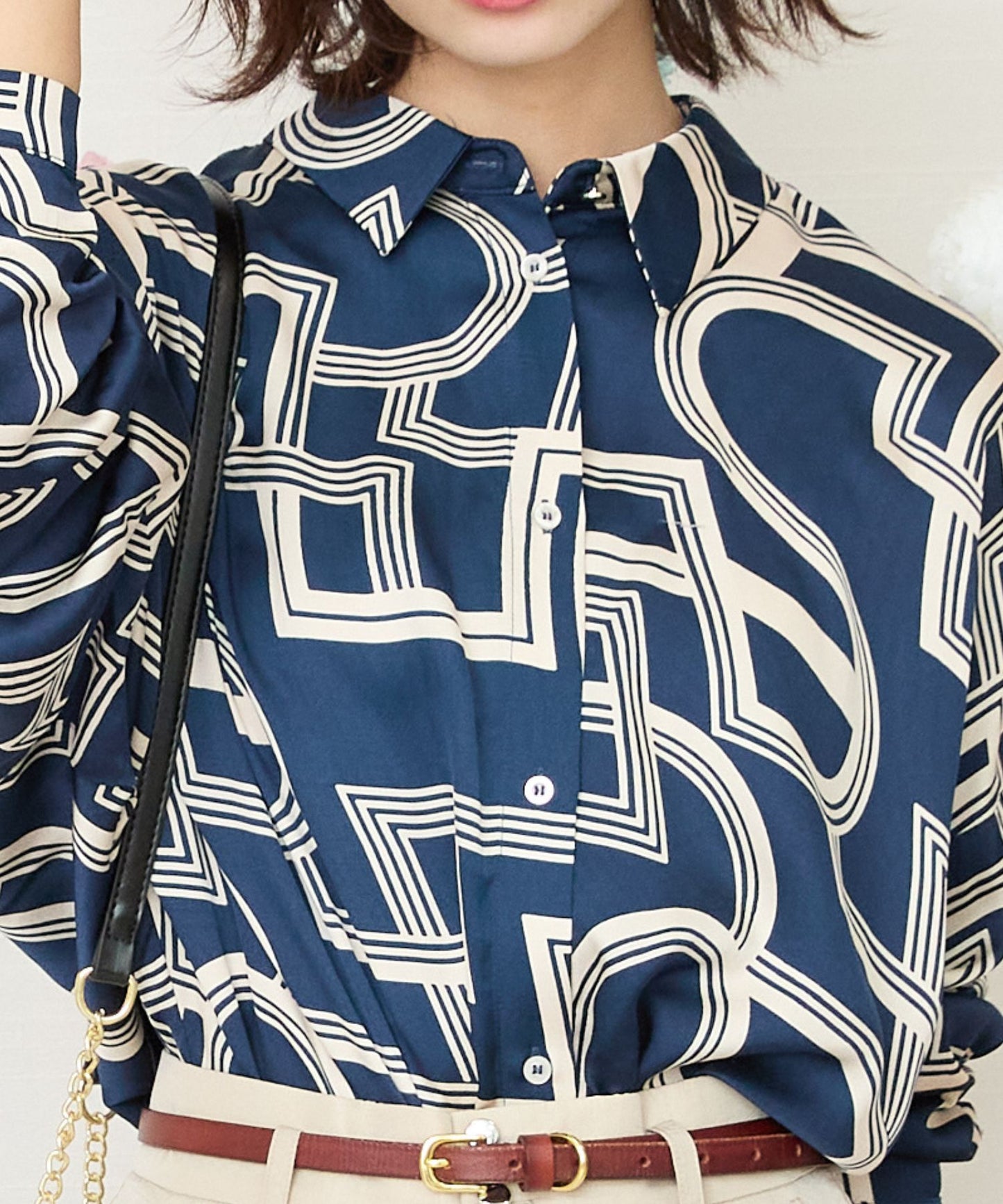 上品な光沢感が魅力のジオメトリックプリントシャツ。