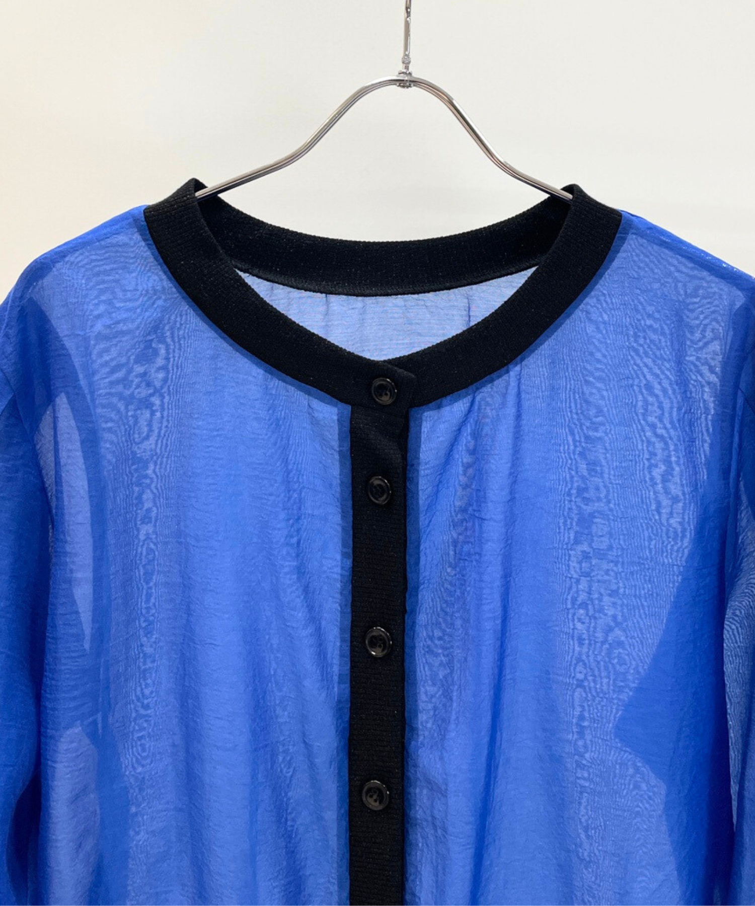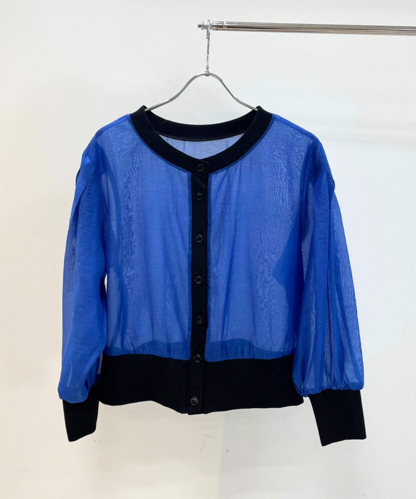 カーディガン本体はワッシャー加工が施されたドライタッチなシアーオーガンジー素材で、肌離れも良く、暑い季節も快適な着心地です。