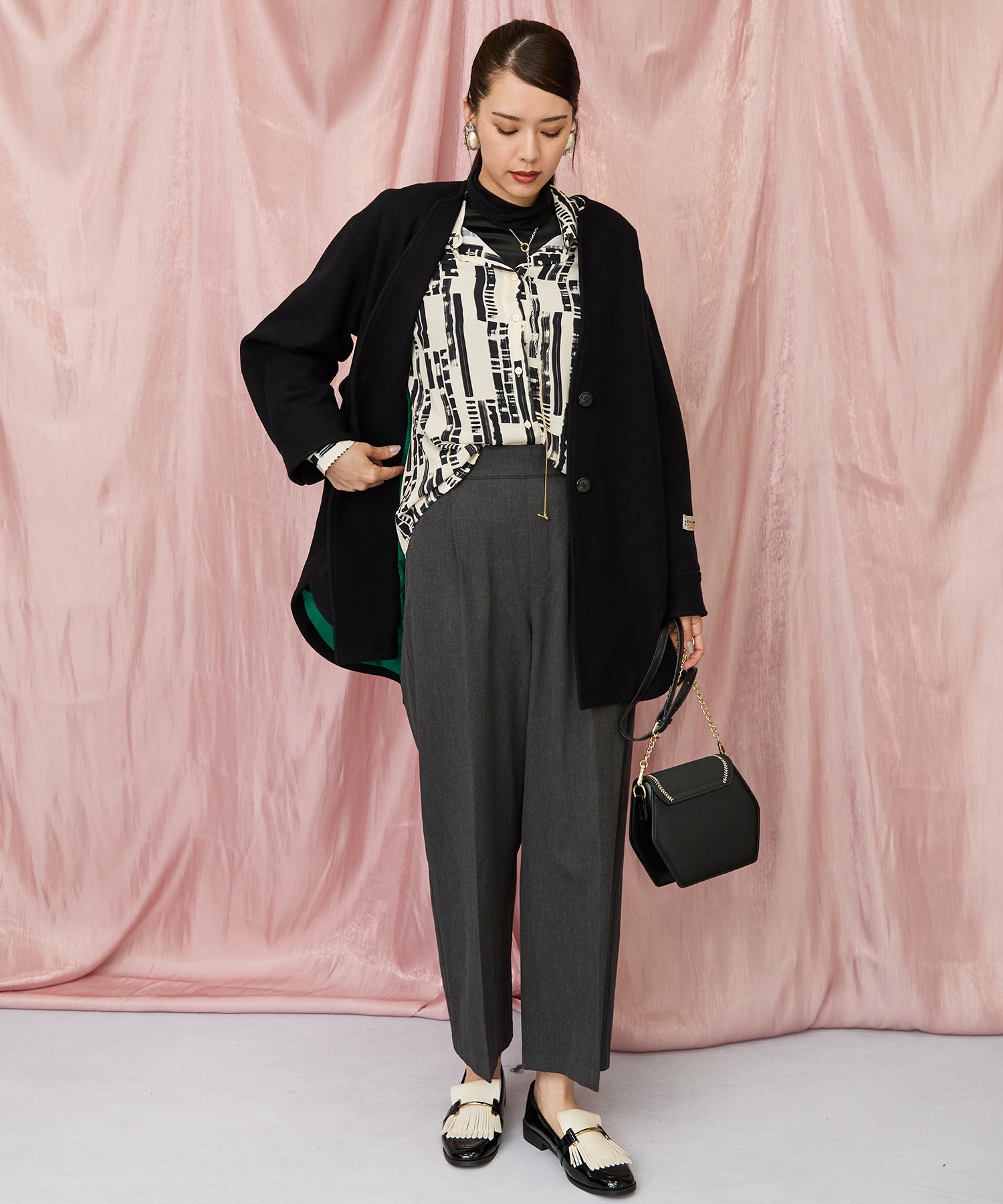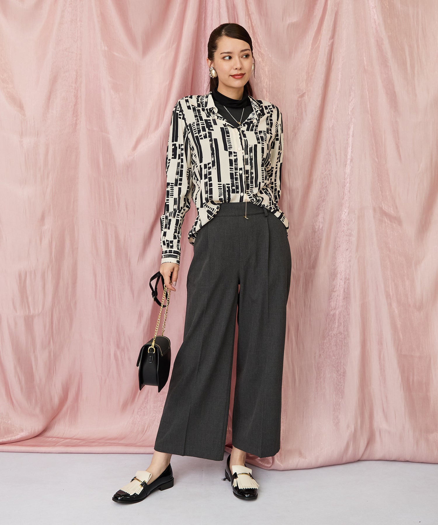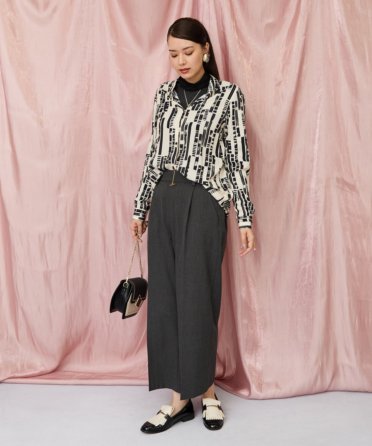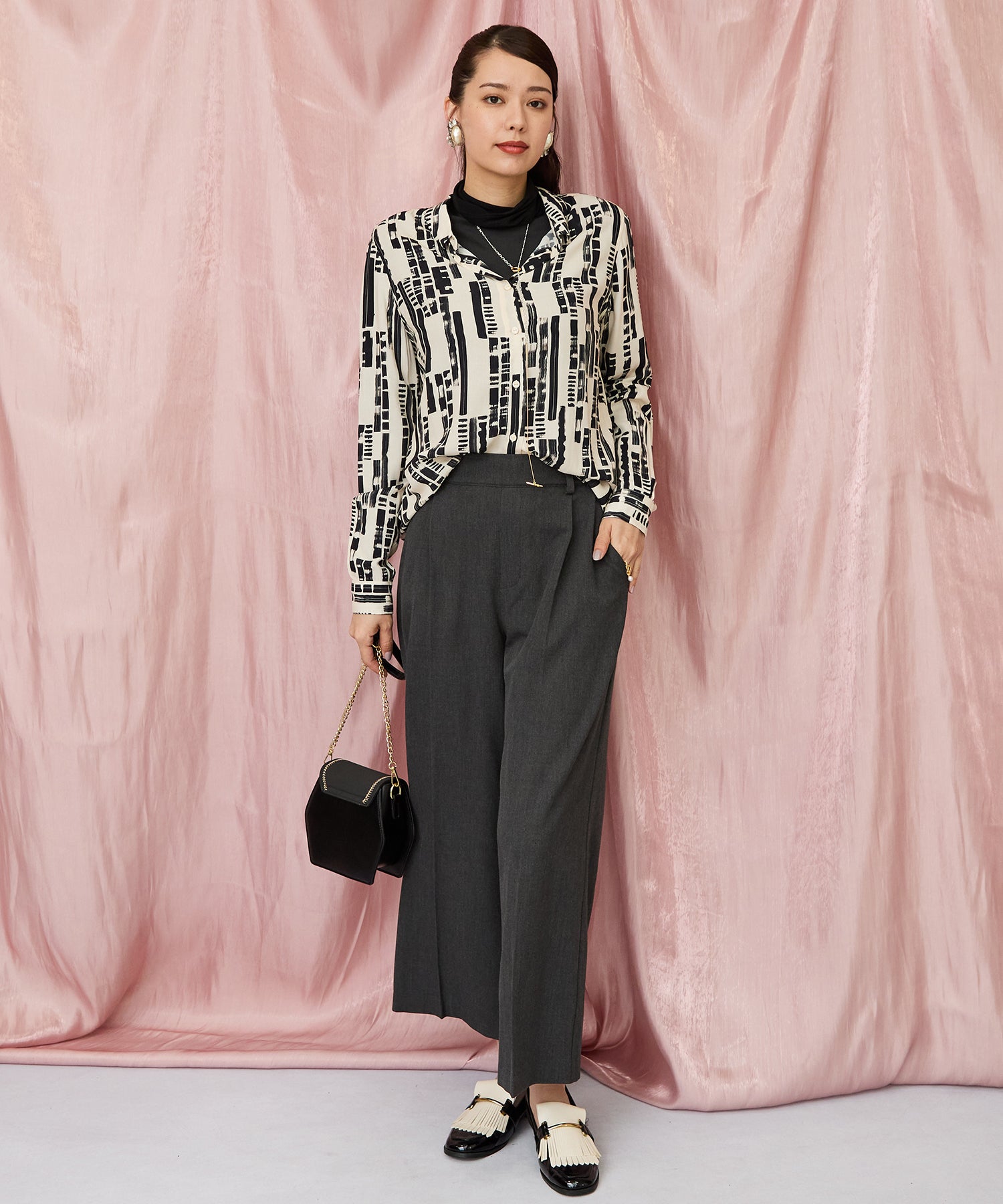 洗練されたアーティな柄と軽やかな素材感で、1枚でも着映える主役アイテムに。