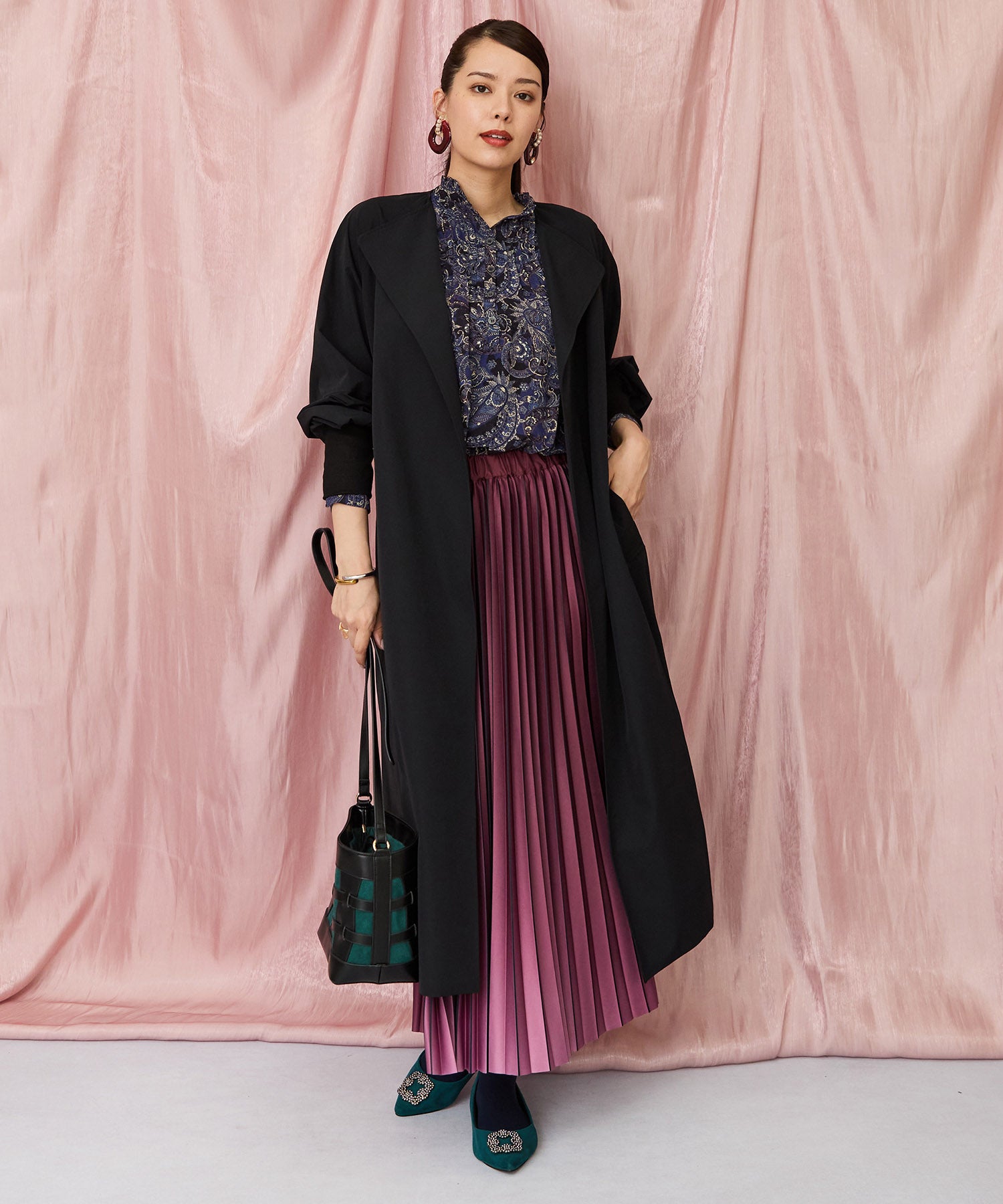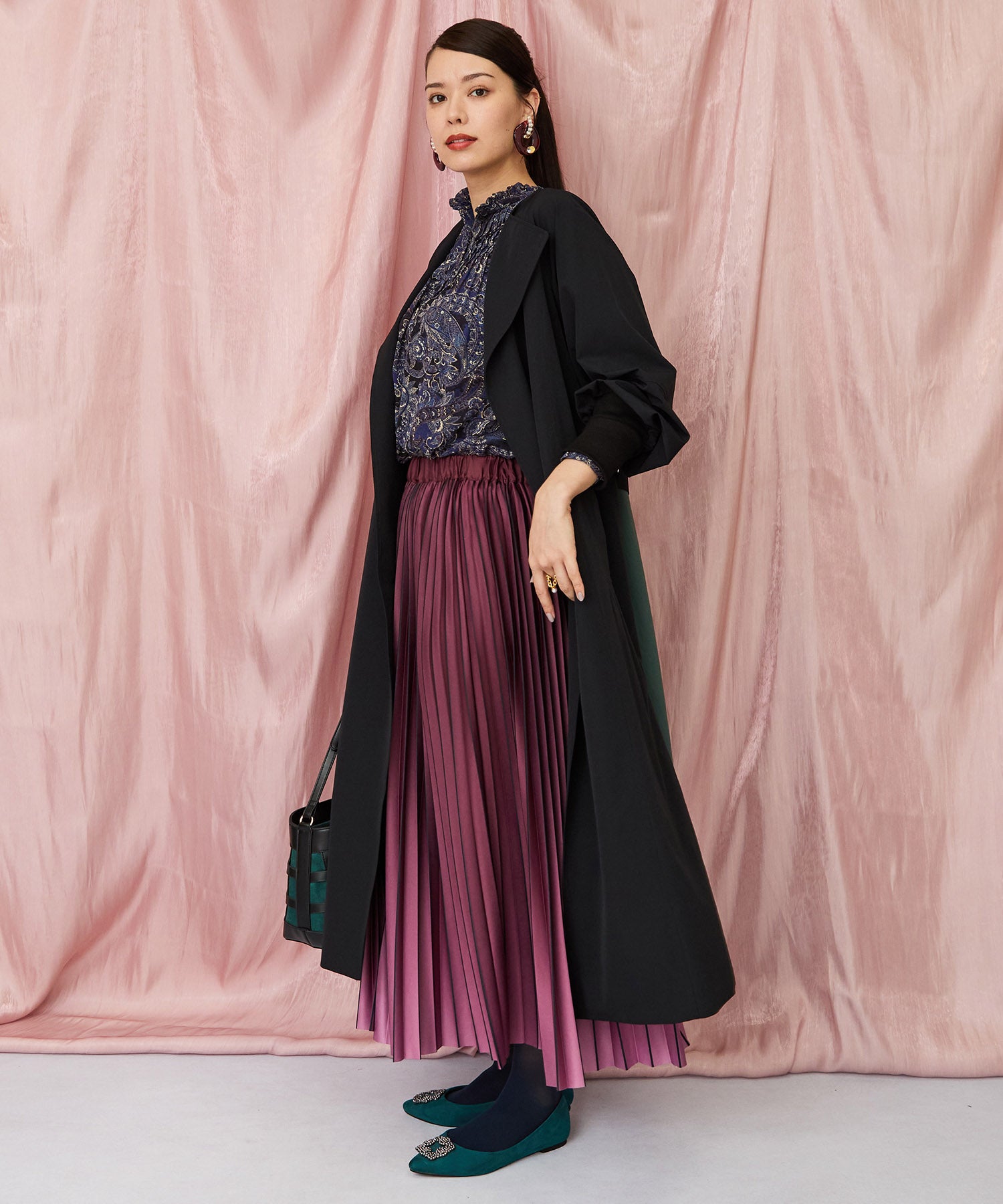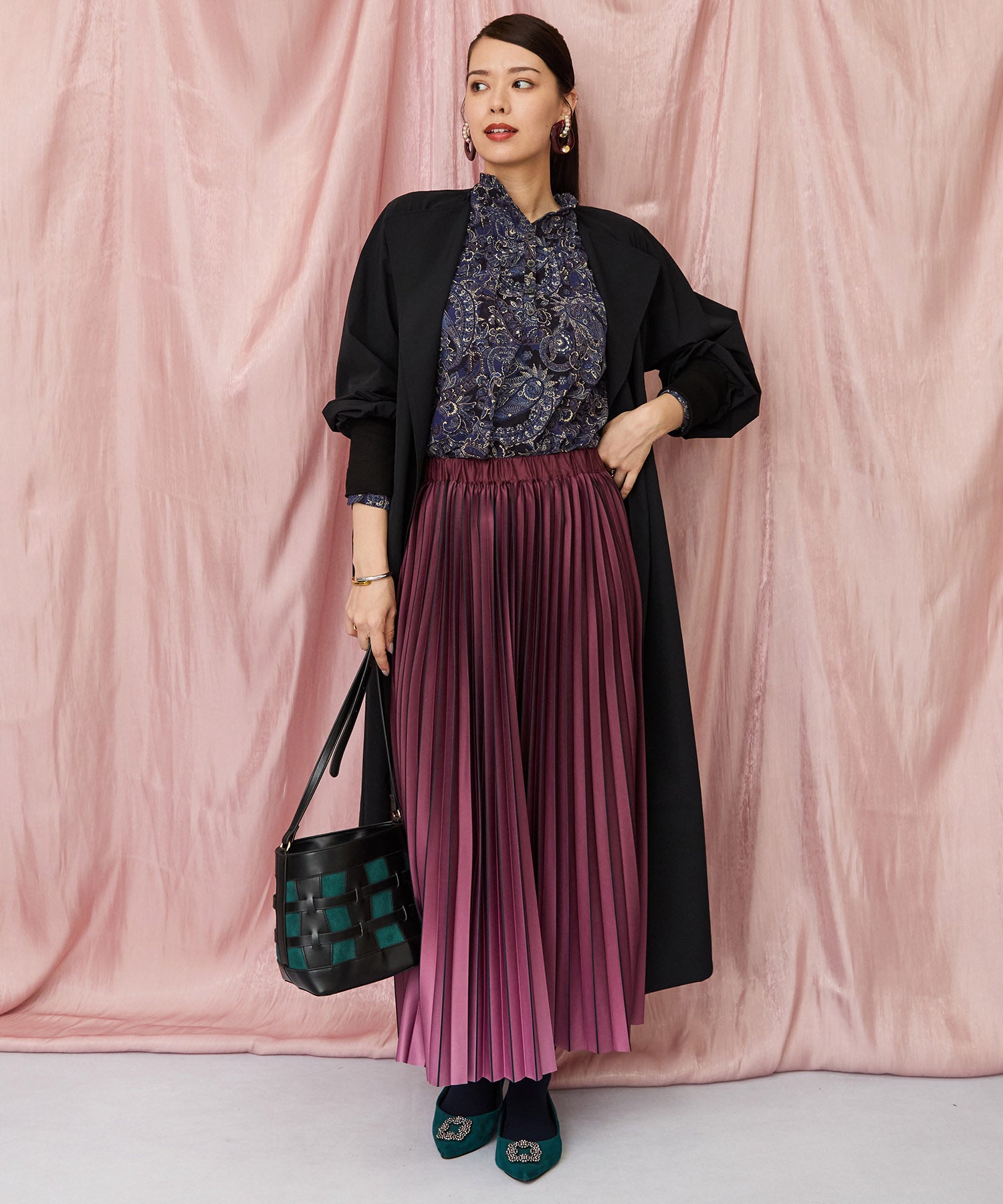 光沢感のあるスカートと合わせてフェミニンに、またはテーパードパンツで知的な雰囲気に仕上げるのもおすすめ。ジャケットのインナーとしても華やぎを添えます。