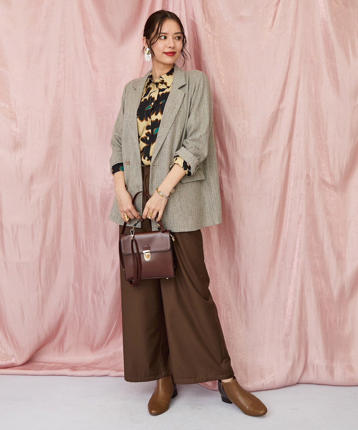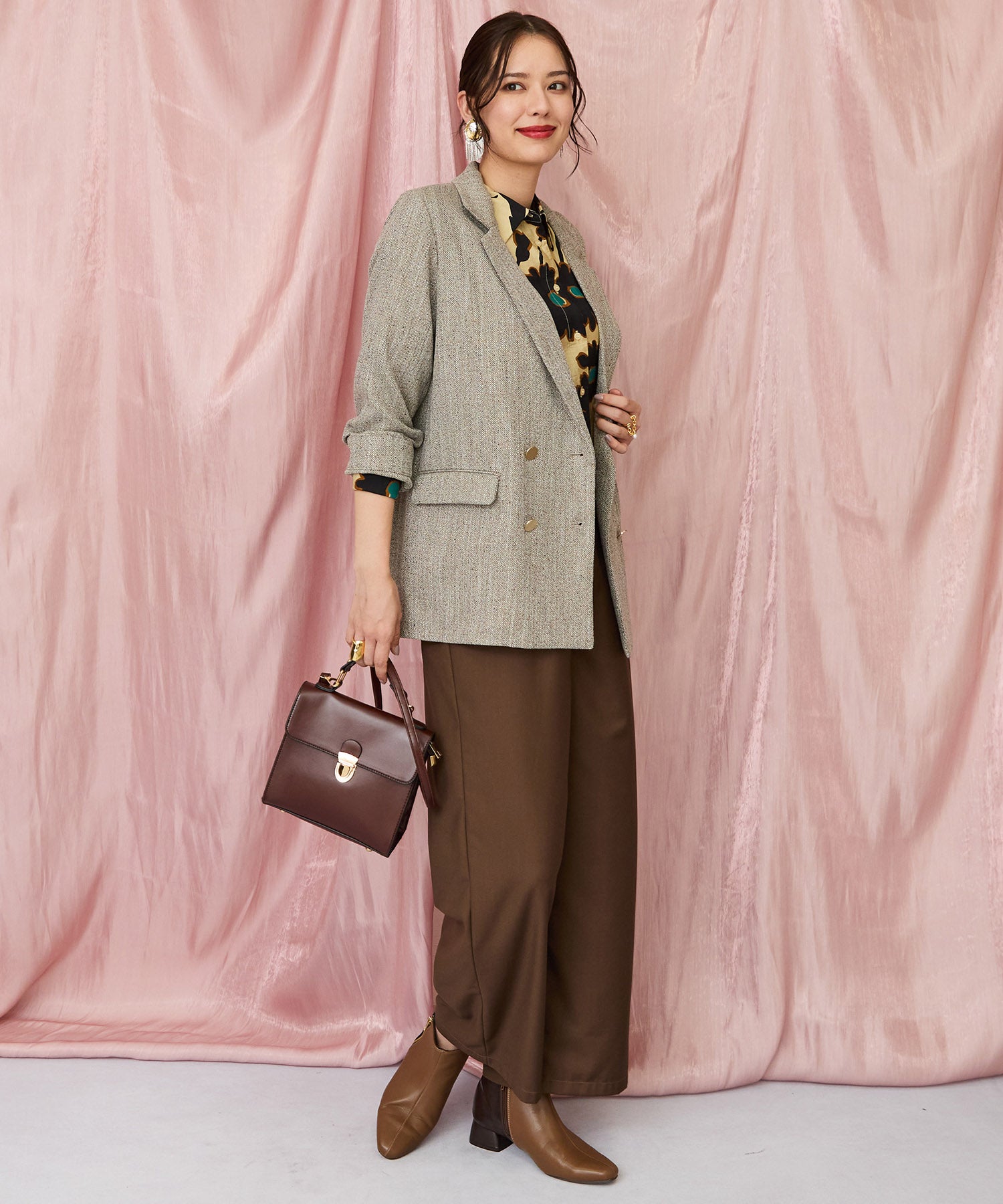 シンプルなボトムスと合わせるだけでコーディネートが完成。ワイドパンツやロングスカートと合わせてモードに、デニムと組み合わせてカジュアルダウンもおすすめです。