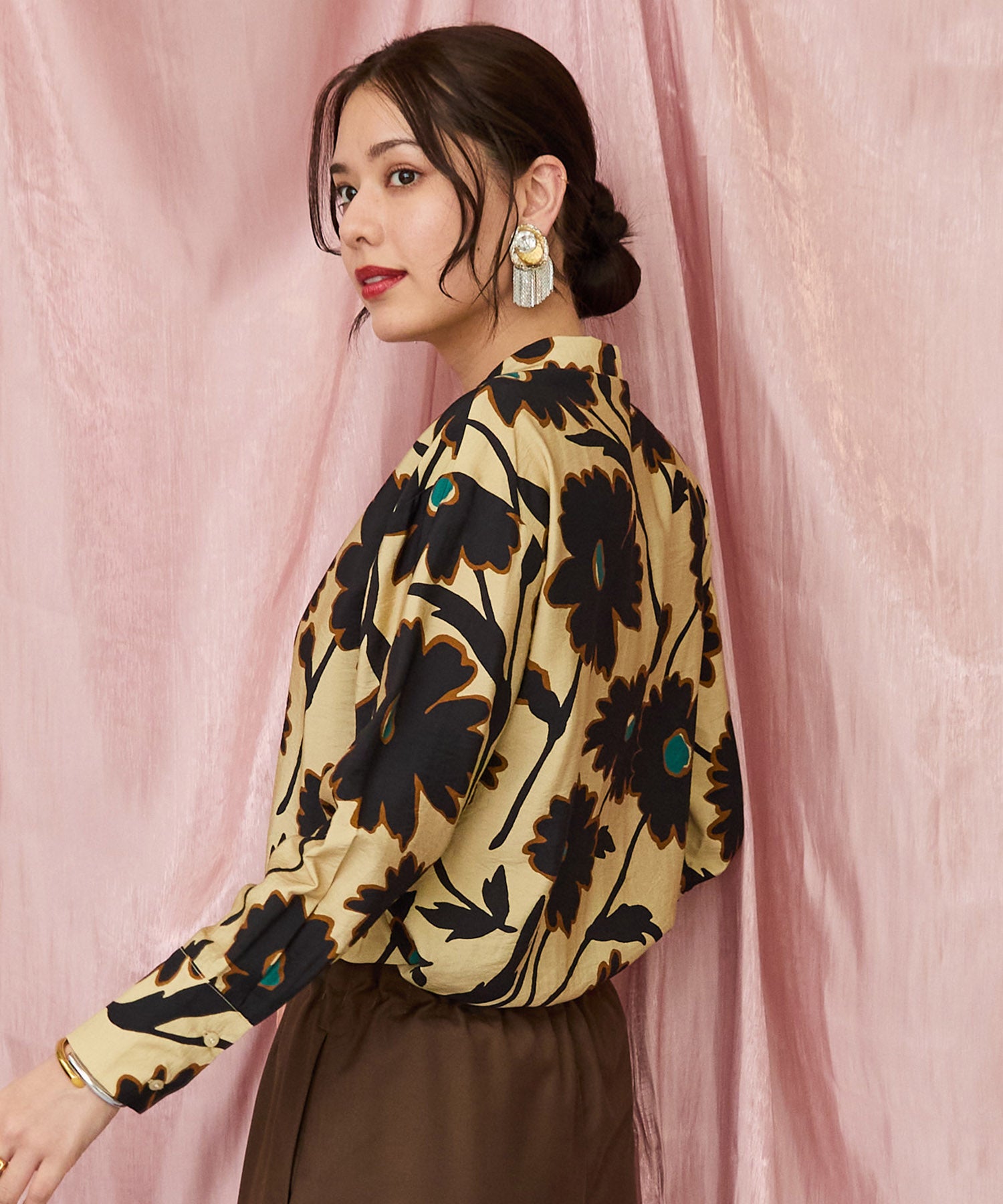 【華やかに着映える、ビッグフラワープリントシャツ】