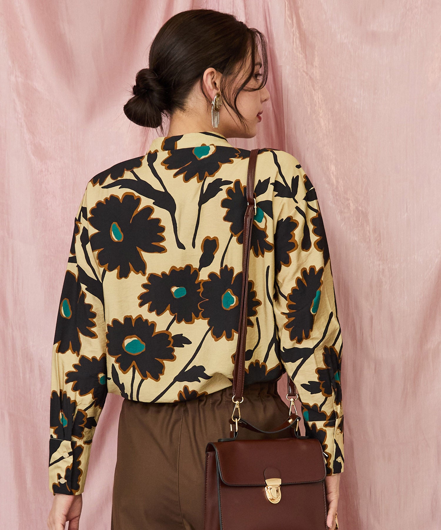 存在感のある大きなフラワーモチーフが印象的なプリントシャツ。ベースカラーとのコントラストで柄が引き立ち、一枚でスタイリングを華やかに演出します。