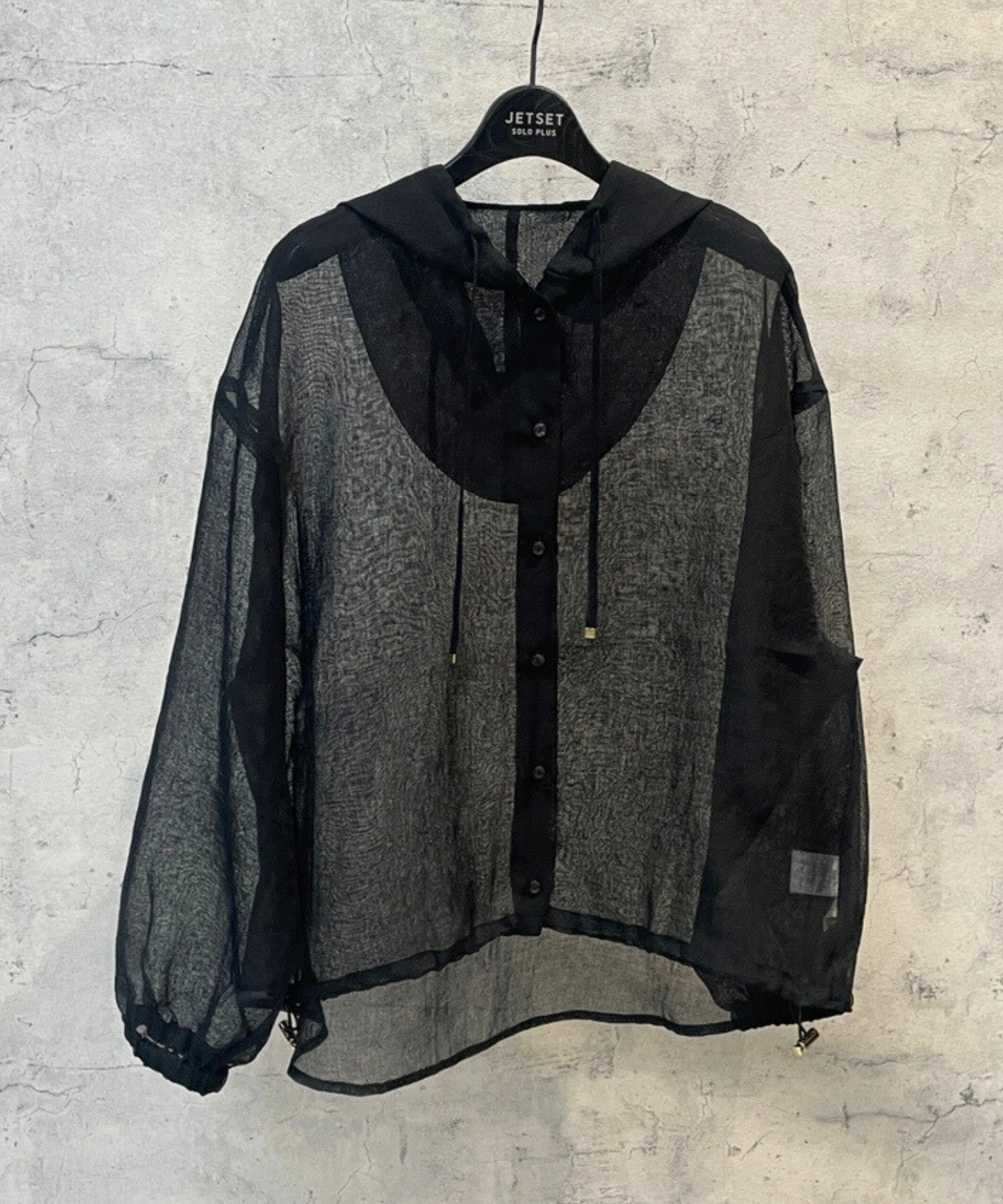 これからの季節にぴったりな、ドライタッチで清涼感のあるパーカーブラウス。
