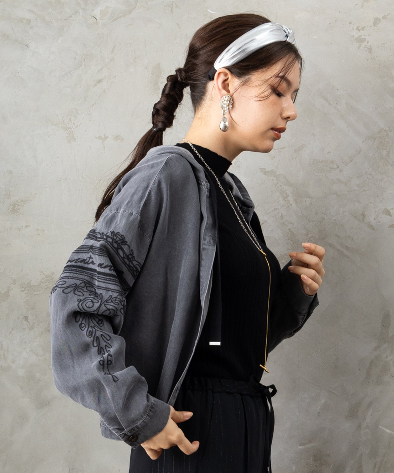 ワイドパンツと合わせてラフに着こなせば、大人の抜け感スタイルに。